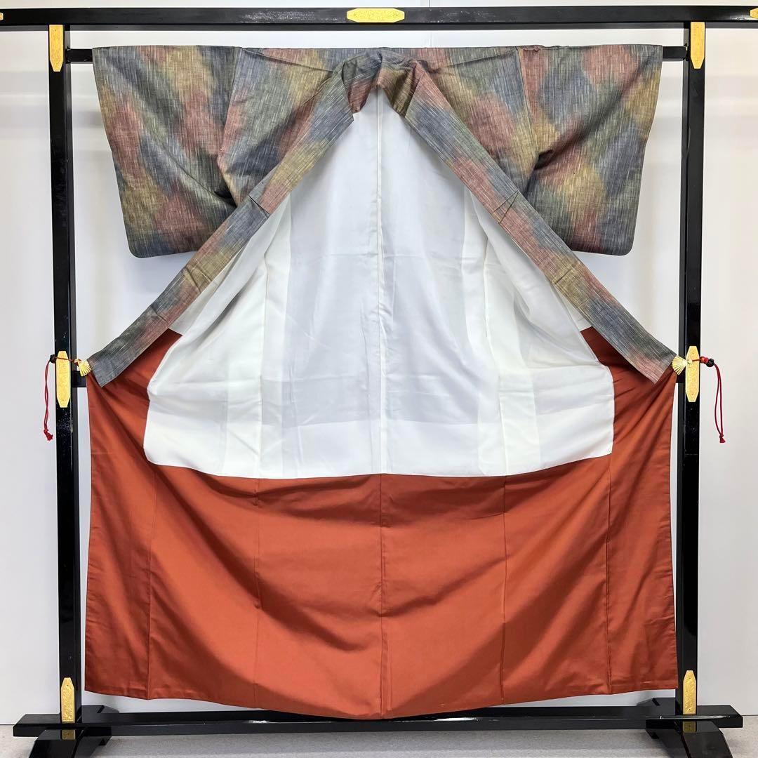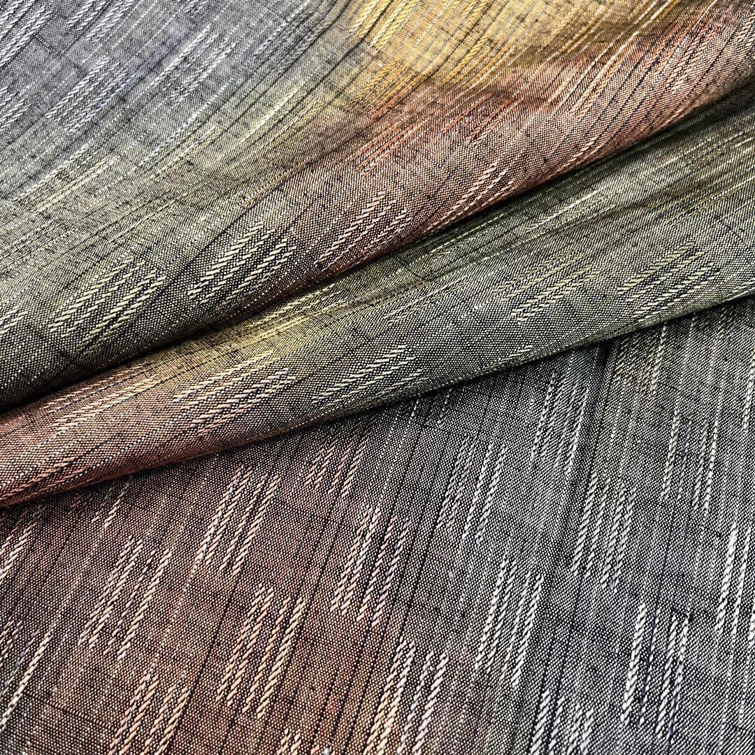 きりとり紬と題された落ち着きのある暈しの草木染の雰囲気の良い素敵な柄裄のお品でございます。