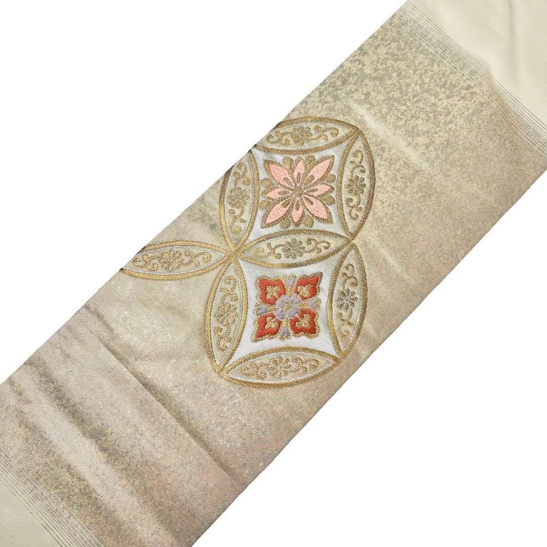 乳白色のお色味に引き箔の金色、花七宝柄の柄裄がデザインされた品のある素敵な柄裄のお品でございます。