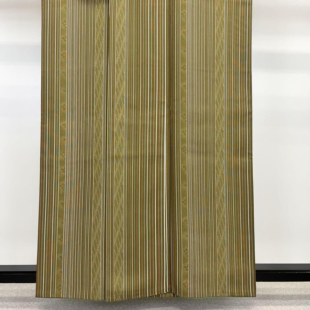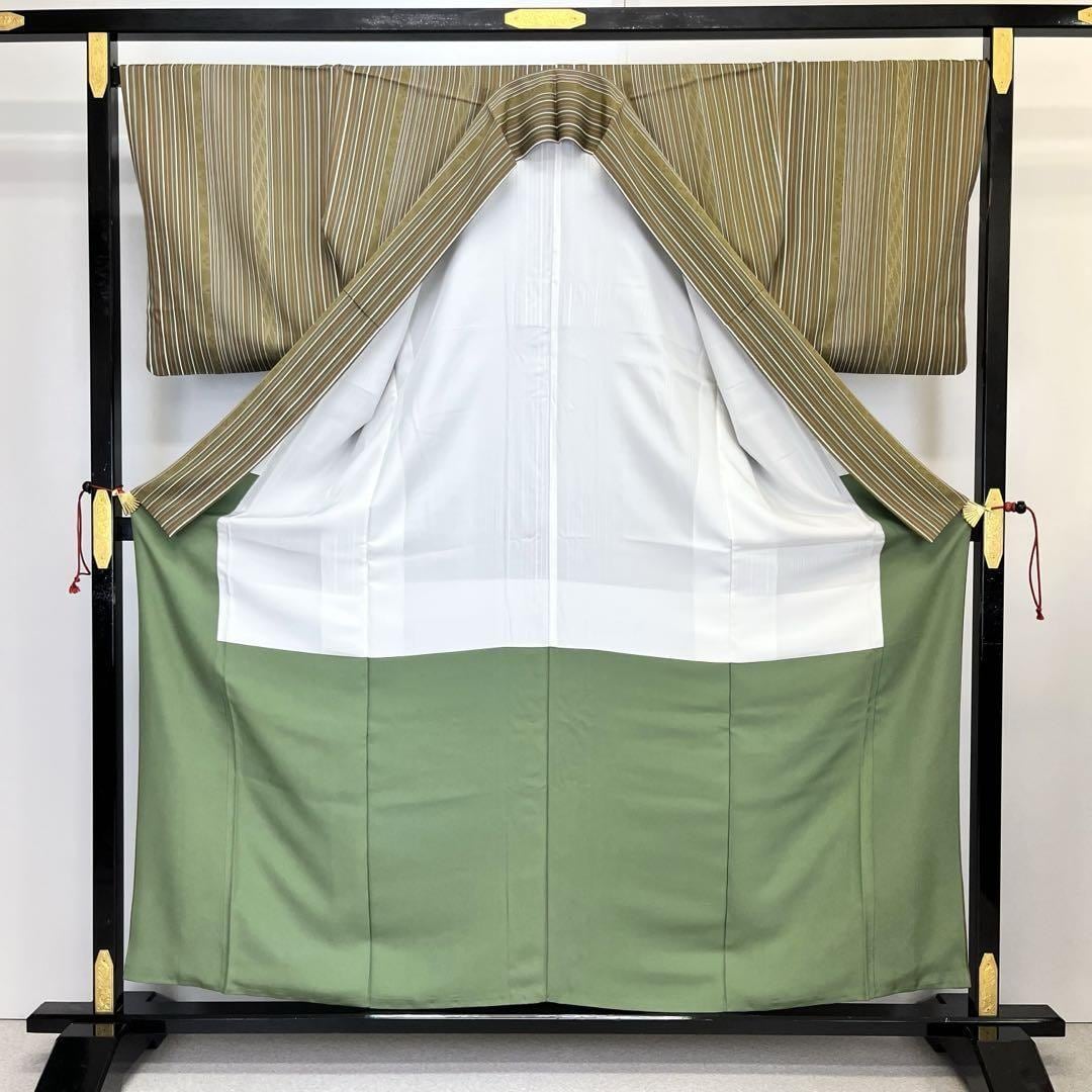 小紋 ストライプ 縦柄縞模様 よれ縞 桜 桑色 縮緬 K-3857 着物 きもの kimono 和服 和装 中古 リサイクル着物 【送料無料】
