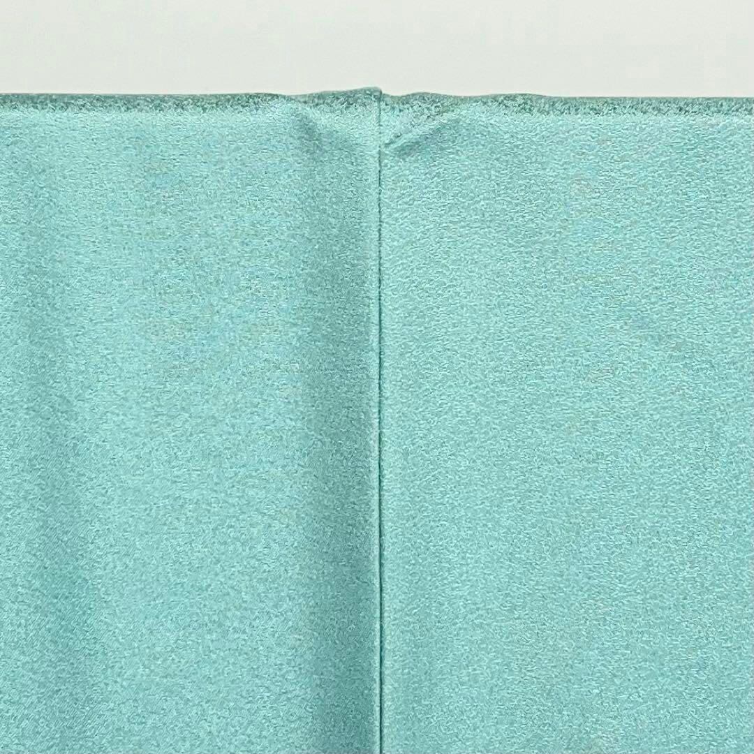 花緑青色ベースの柔らかいお色味に暈し染、流水に松花模様の柄行がデザインされた品なある素敵な柄裄のお品でございます。