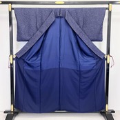 灰汁発酵建天然藍染の美しいお色味の天然藍染、雰囲気の良い細かな叩き染の柄裄が素敵なお品でございます。