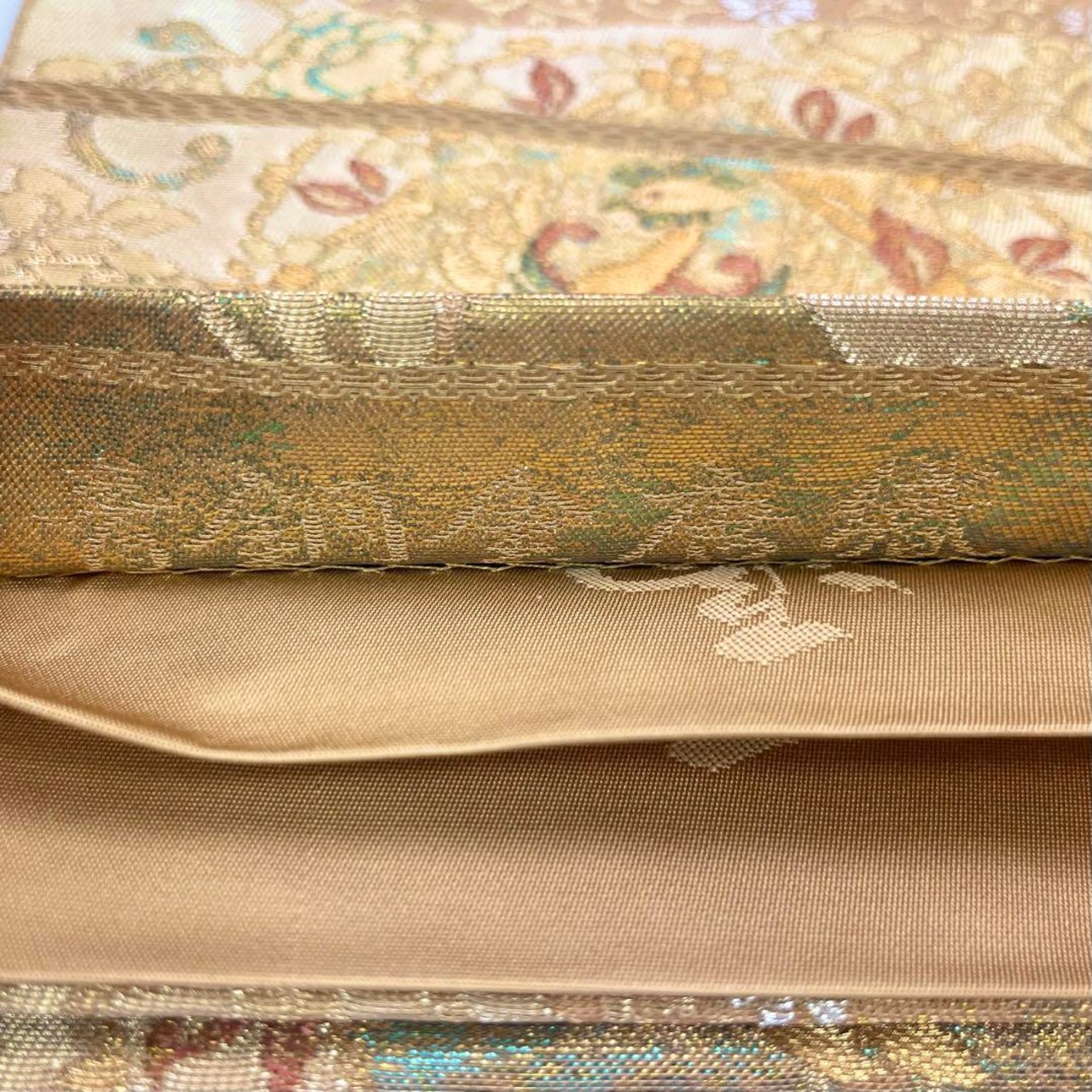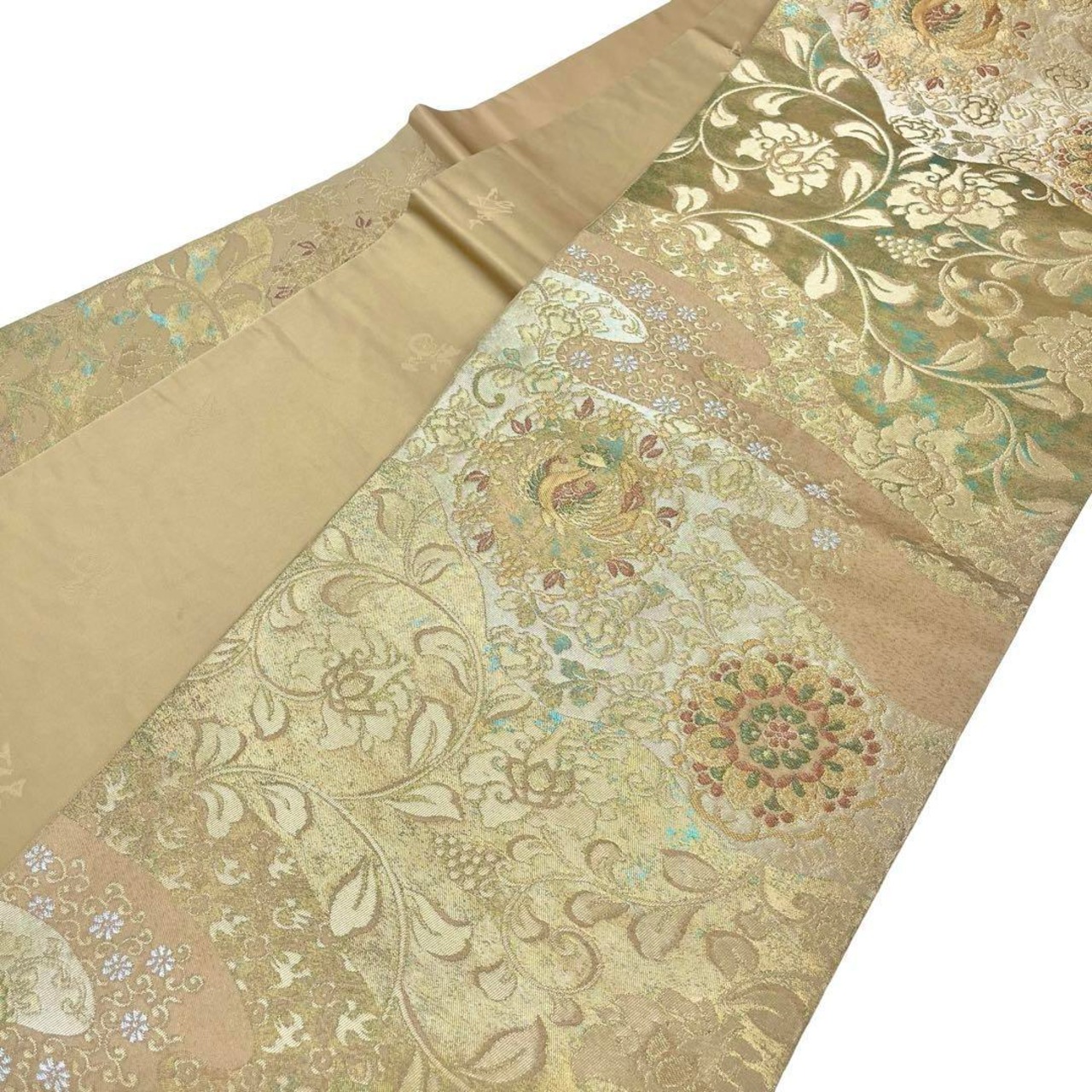 袋帯 青銅金唐織 引箔 鳥に花唐草模様 金色 O-3897
