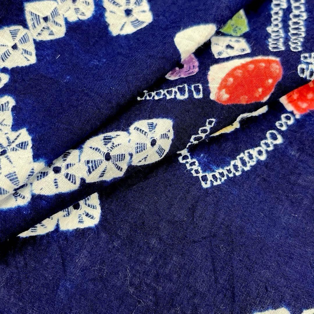 藍色ベースのお色味、蝶ひ花模様の柄裄がデザインされた素敵な柄裄のお品でございます。