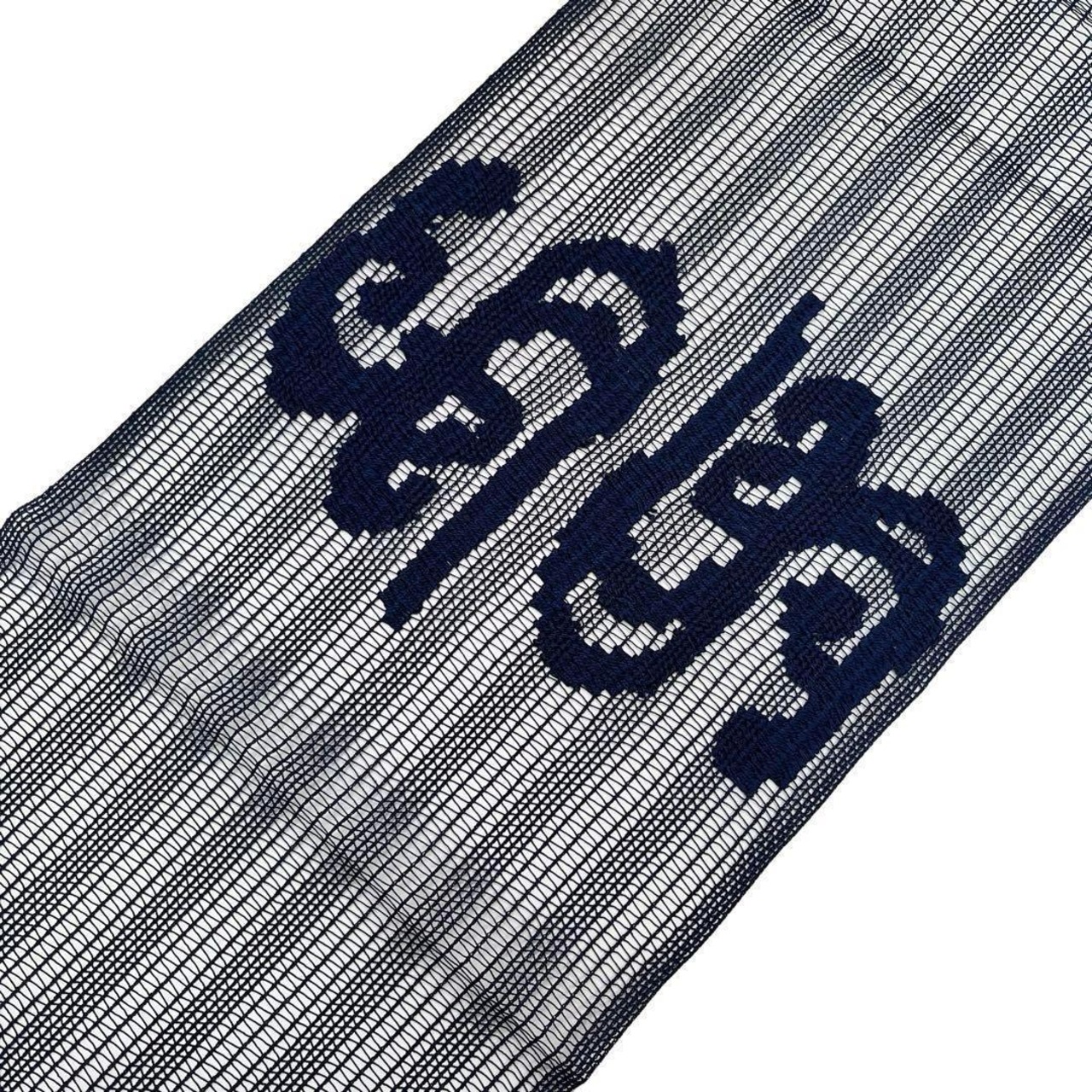 濃い目の藍色のお色味に羅の透け感のある織り、蔦模様の柄裄がデザインされた素敵なお品でございます。