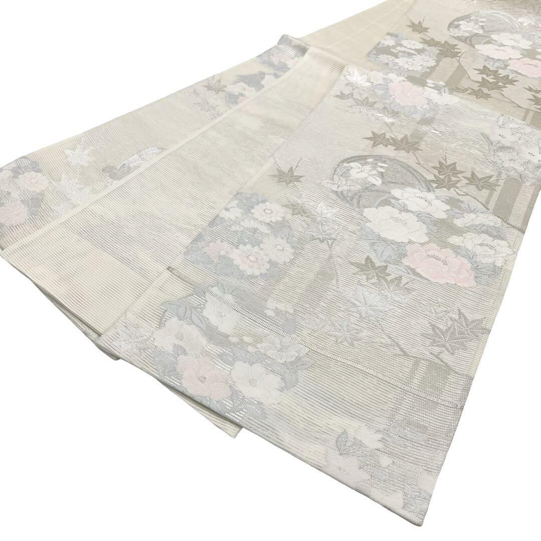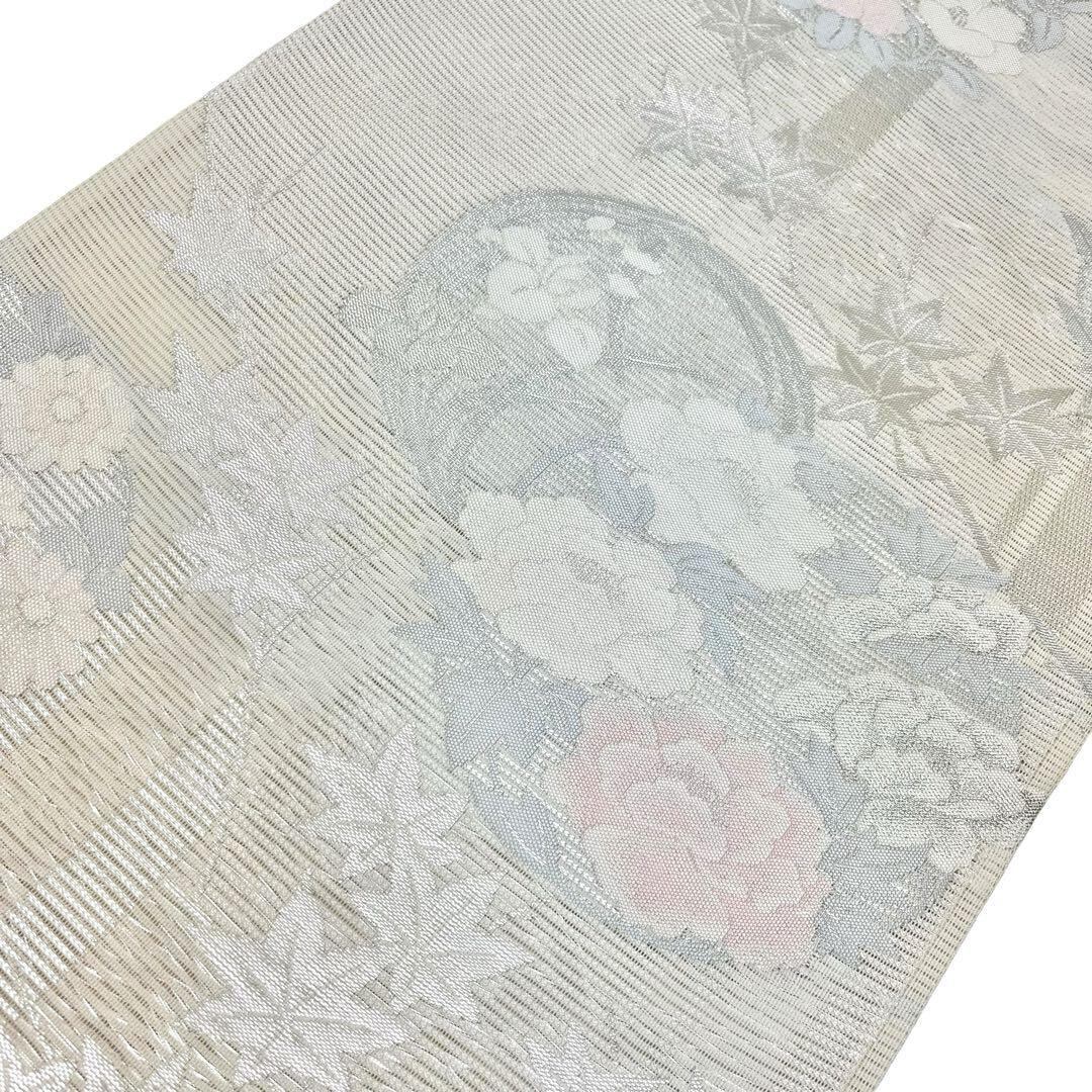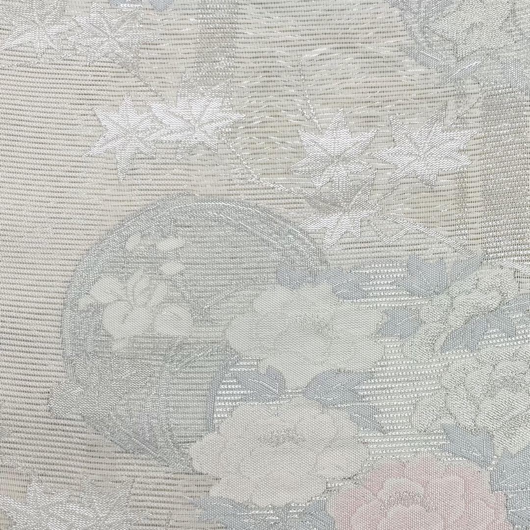 丸に菊、牡丹などの上品な花模様がデザインされた涼しげな雰囲気の素敵な柄裄のお品でございます。