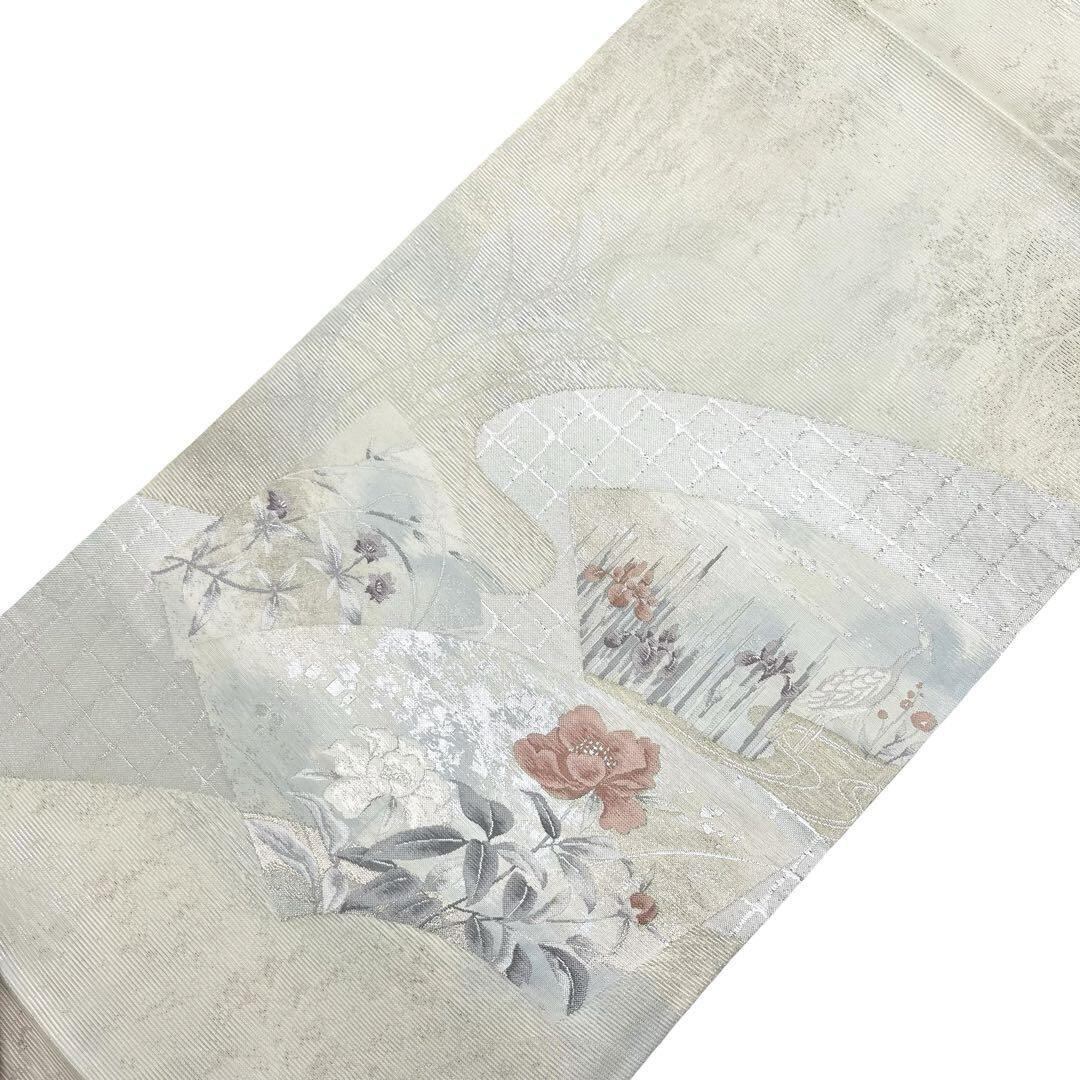 夏帯 袋帯 絽 流水に花模様 菖蒲 鳥 金銀糸 乳白色 O-3941 着物 きもの kimono 和服 和装 中古 リサイクル着物 【送料無料】
