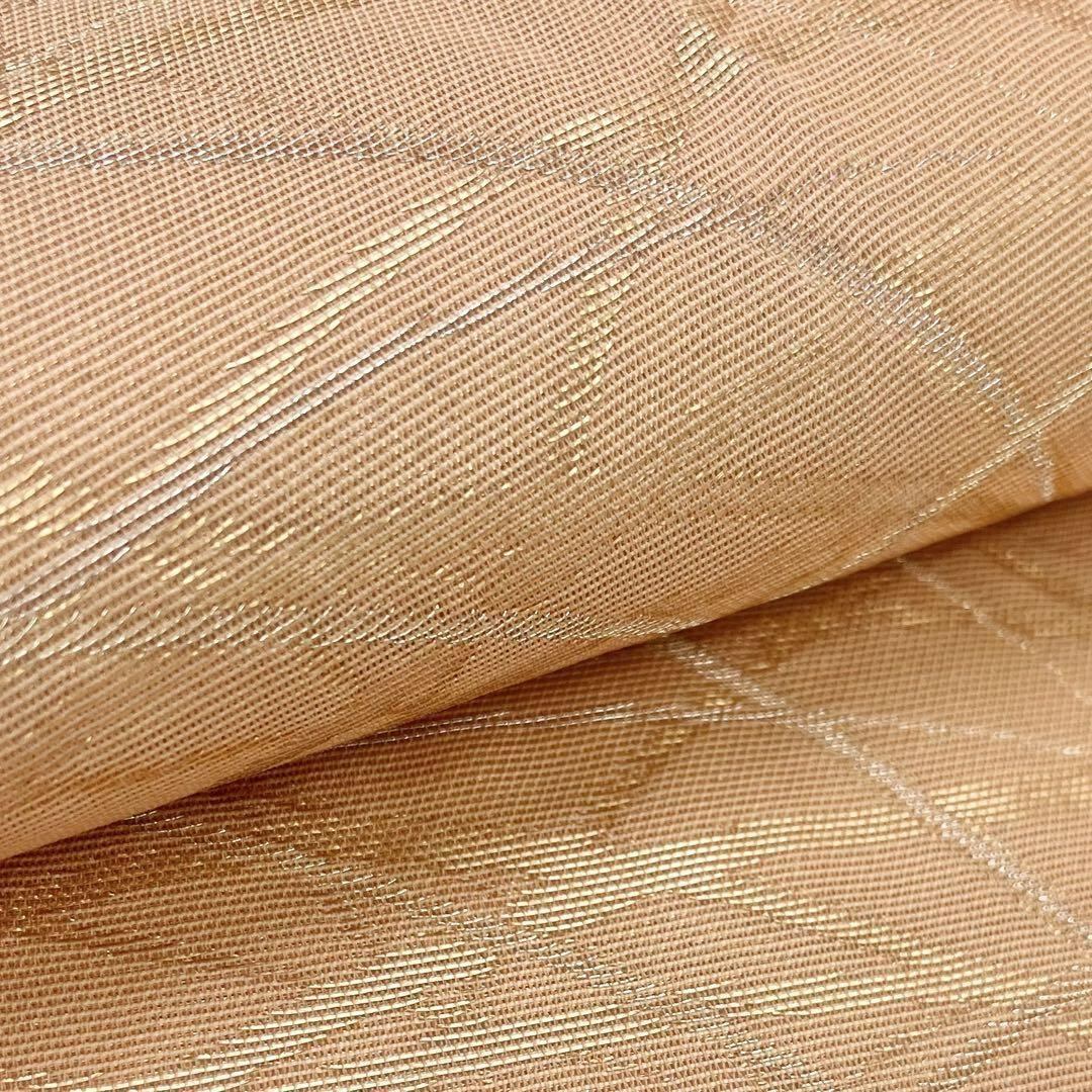 夏帯 袋帯 紗 金銀芝模様 薄柿色 O-3953 着物 きもの kimono 和服 和装 中古 リサイクル着物 【送料無料】