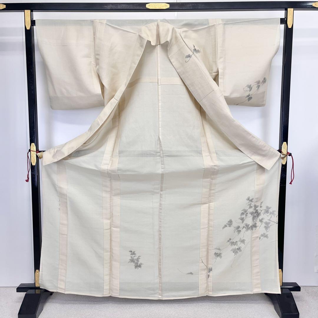 夏着物 付下げ 紗紬 涼庵 手描き 葡萄柄 枯野色 トールサイズ K-3886