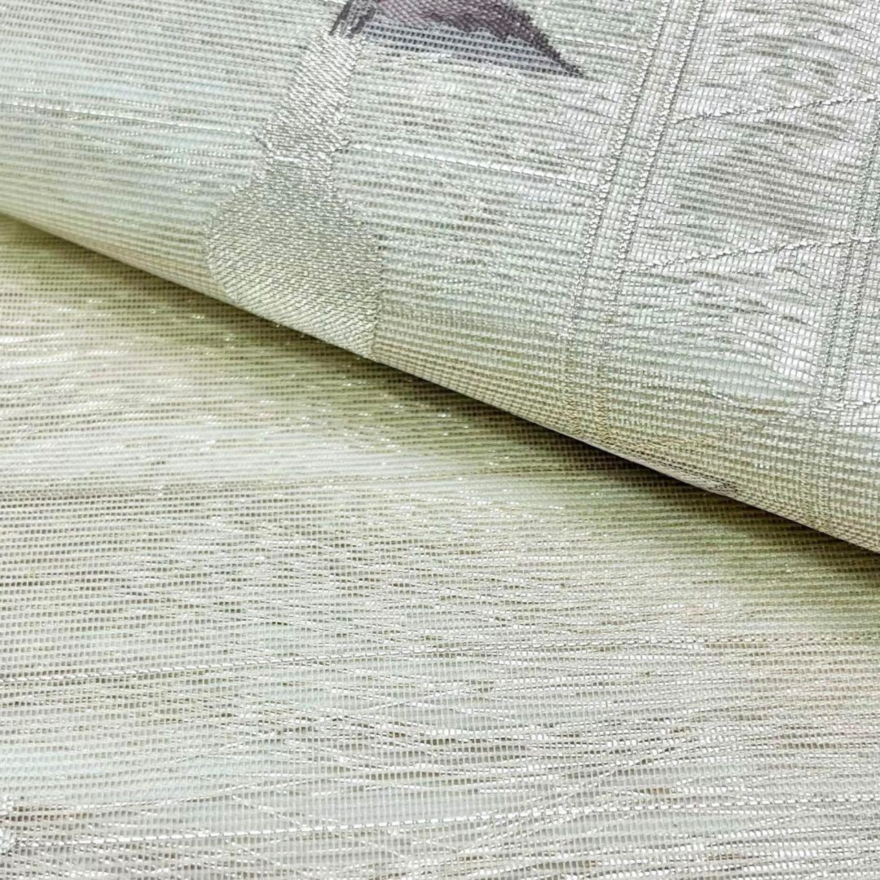 夏帯 袋帯 夏すくい 一輪挿しの花 銀糸 白土色 O-3959