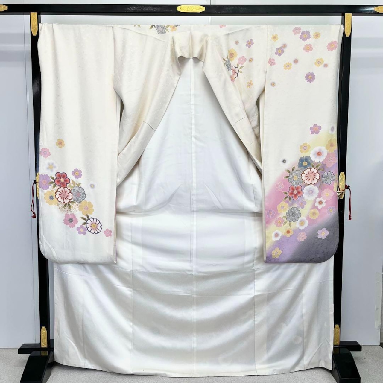 振袖 美しい花柄模様 金駒刺繍 金通し 暈し染 乳白色 K-3911