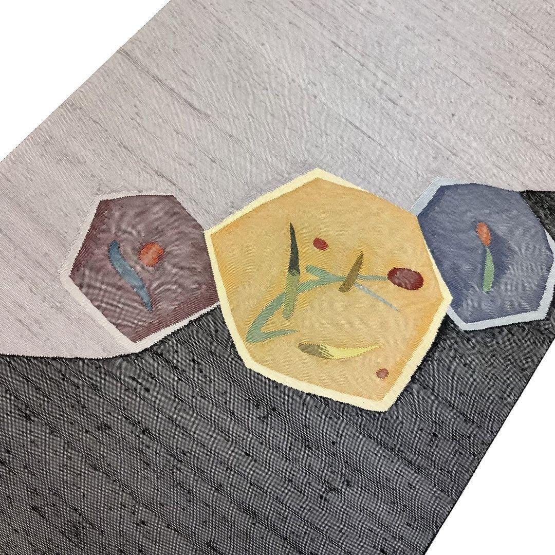 袋帯 織部連山 抽象織模様 紬 納戸鼠色 ガード加工 O-3961 着物 きもの kimono 和服 和装 中古 リサイクル着物 【送料無料】