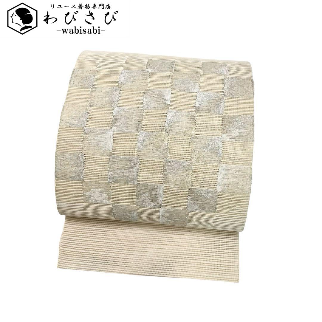 生成色のお色味に四角模様が並べられた素敵な柄裄のお品でございます。