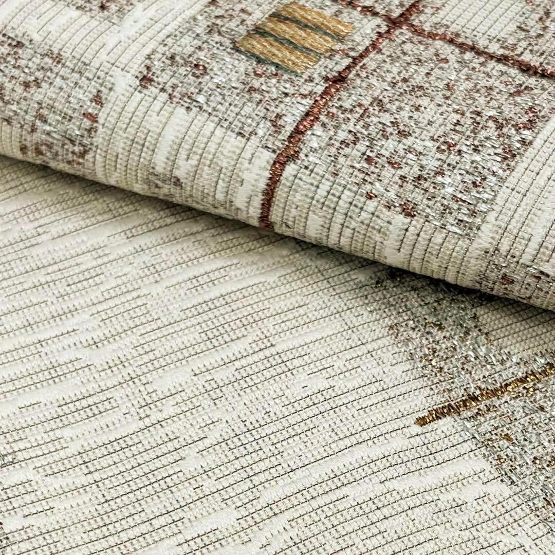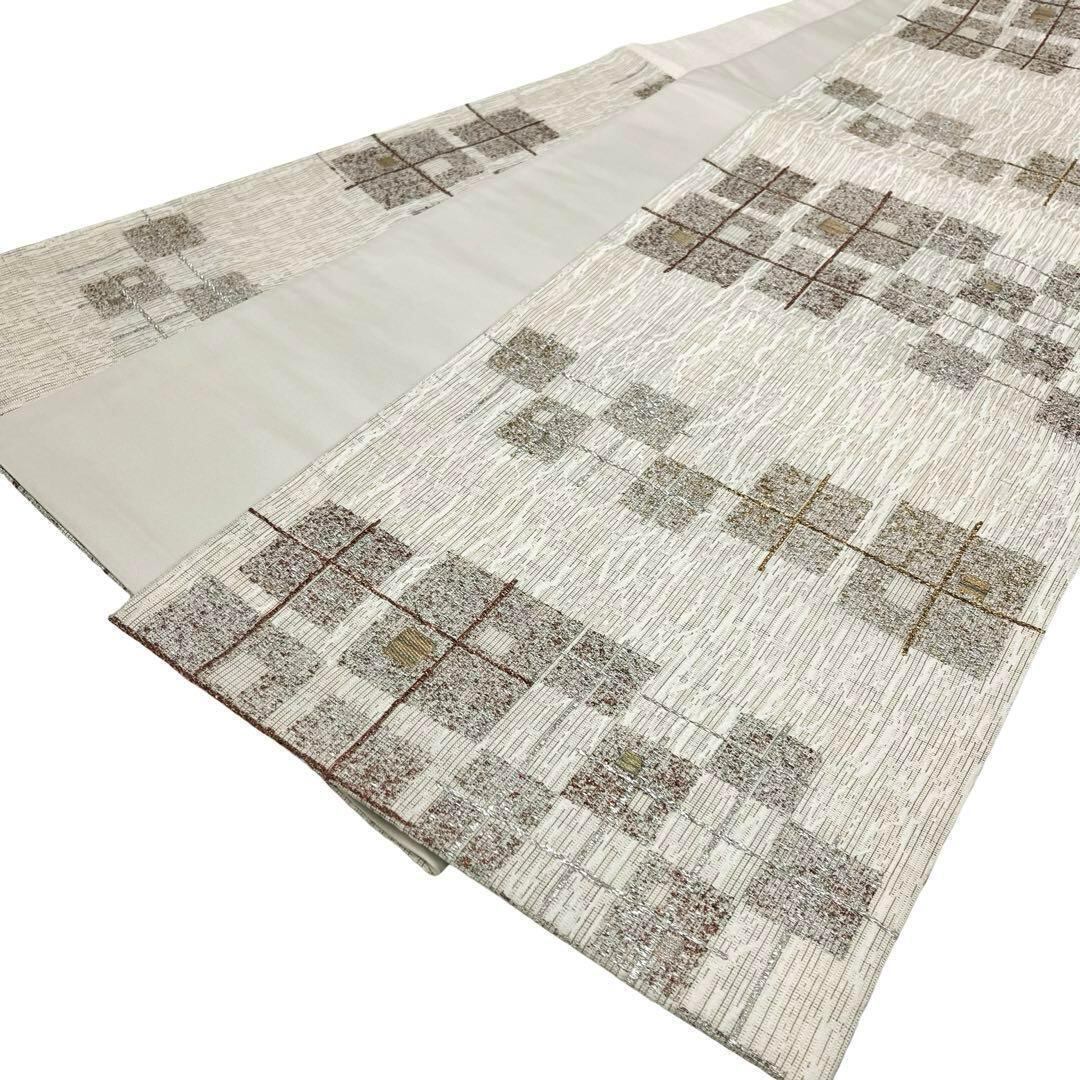 灰白色の上品なお色味に多様な四角の織模様がデザインされた雰囲気の良い素敵な柄裄のお品でございます。