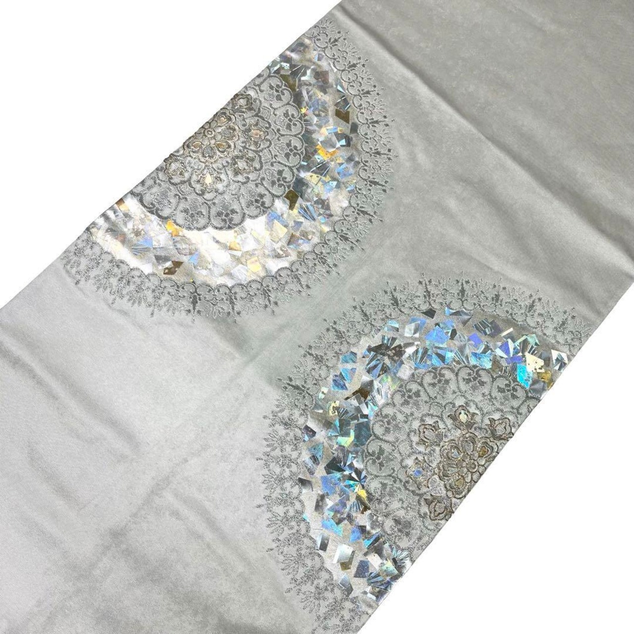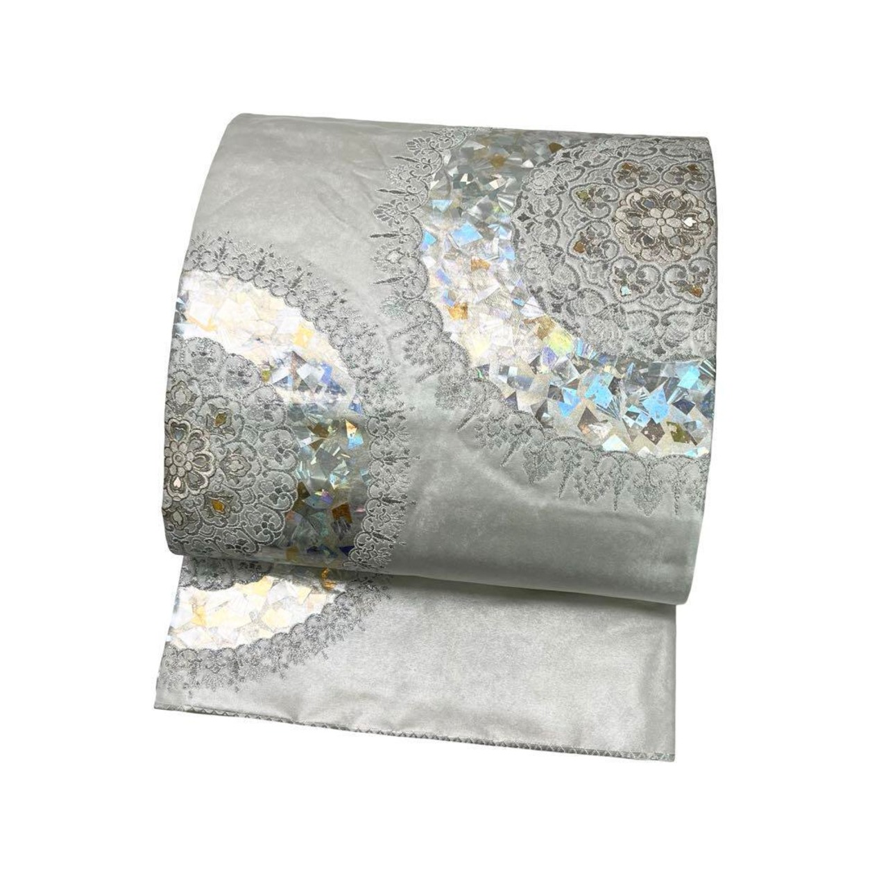 袋帯 堀省平 金彩の魔術師 金煌織 煌びやかな箔模様 銀白色 O-3979