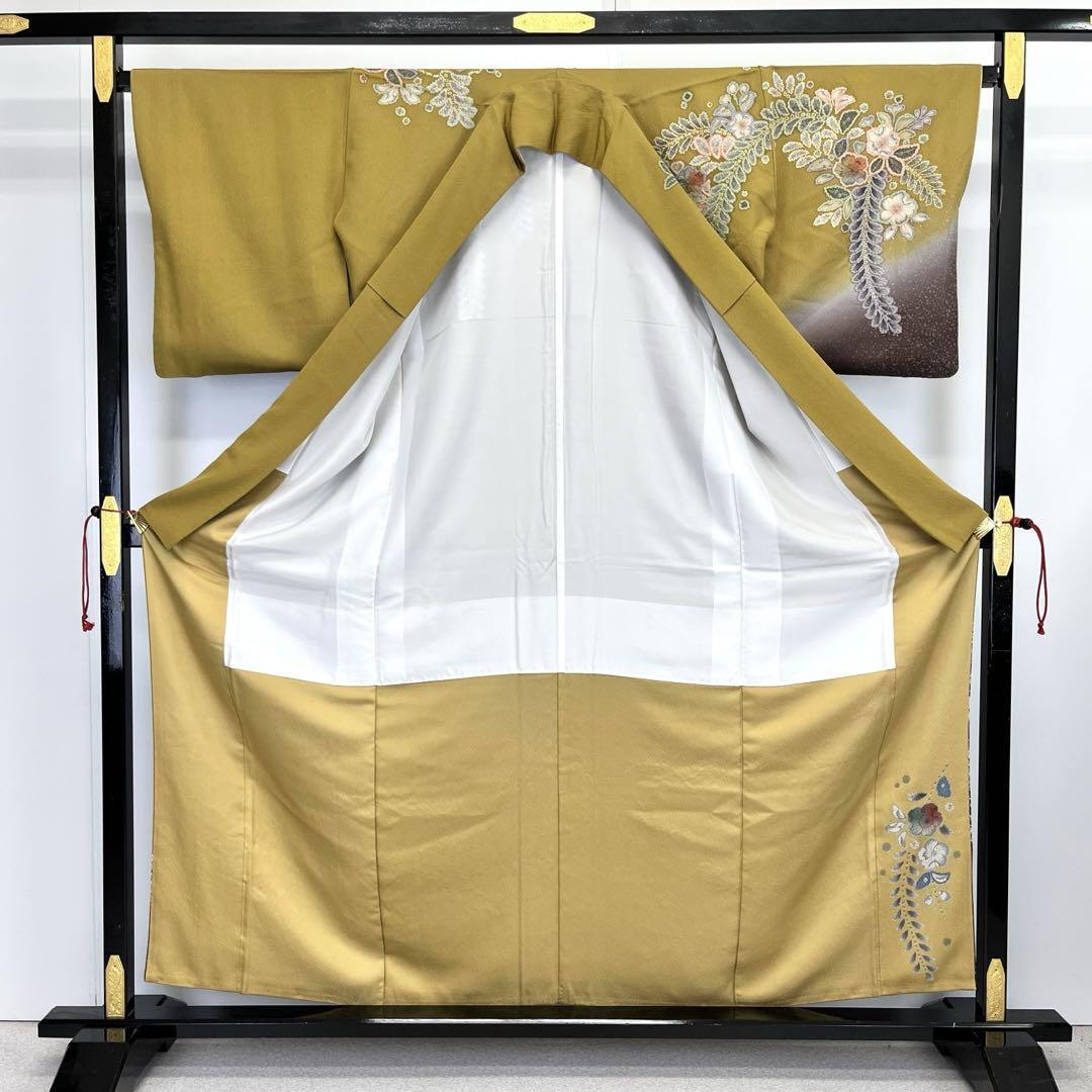 訪問着 作家物 美しい辻が花絞り 縮緬 芥子色 K-3909