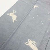 薄墨色の上品なお色味、月にうさぎ、花模様の柄裄がデザインされた素敵なお品でございます。