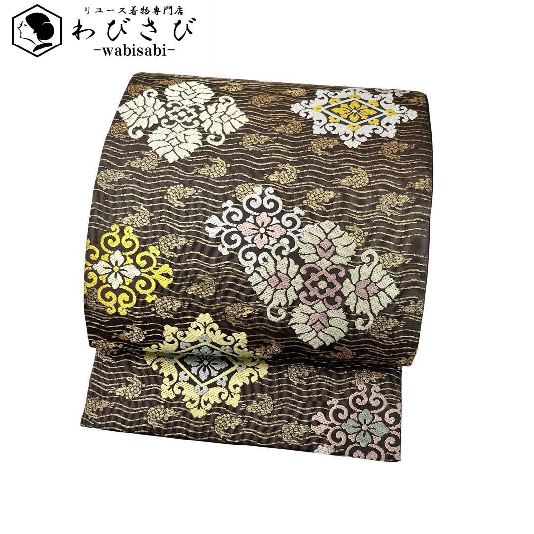 袋帯 荒磯地に菱花文 金糸 茶色 O-3977 着物 きもの kimono 和服 和装 中古 リサイクル着物 【送料無料】