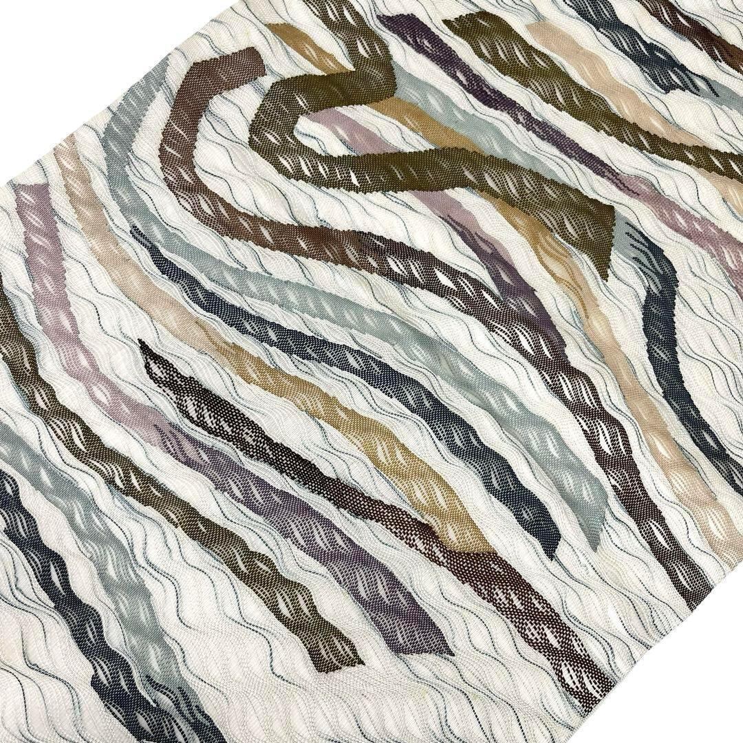 夏すくいの透け感のある乳白色ベースのお色味に落ち着きのある多彩な色彩の熨斗模様がデザインされた素敵な柄裄のお品でございます。