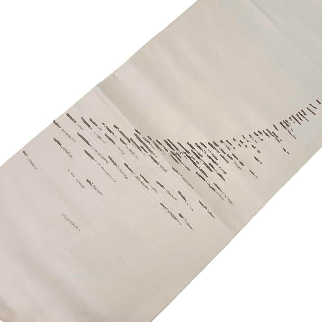 名古屋帯 抽象横柄模様 銀糸 白土色 ガード加工 O-3971