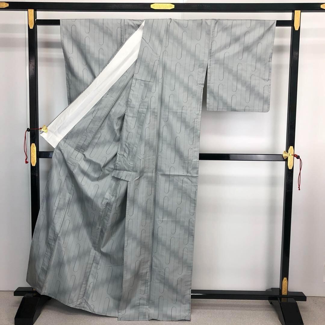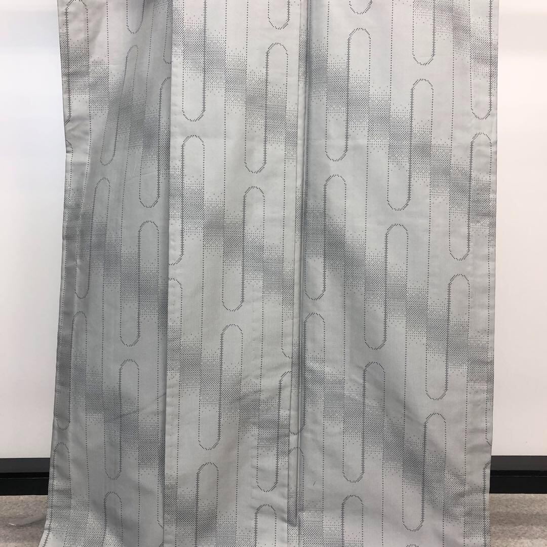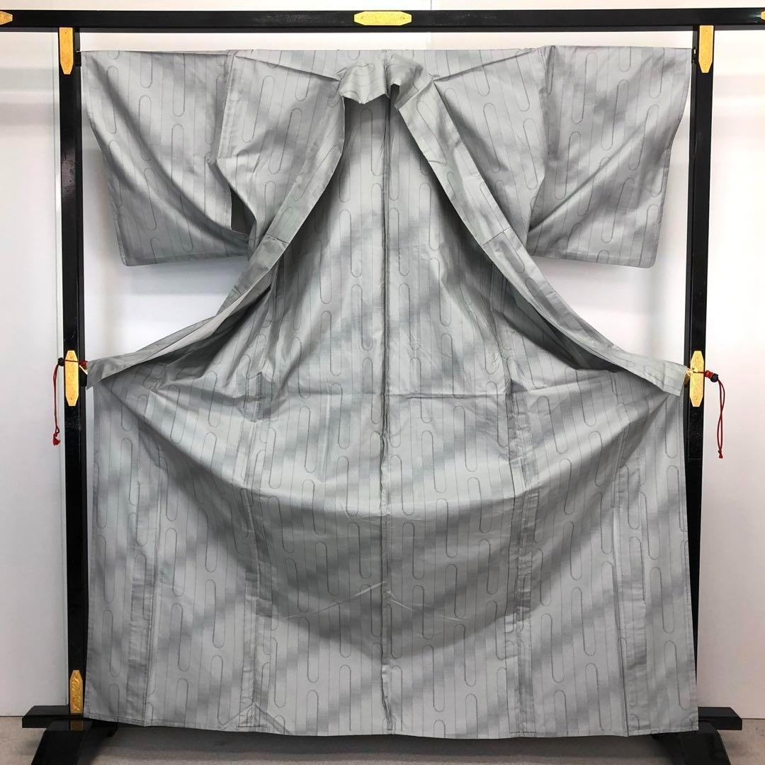 灰色ベースのお色味に縦柄の霞模様がデザインされた素敵な柄裄のお品でございます。