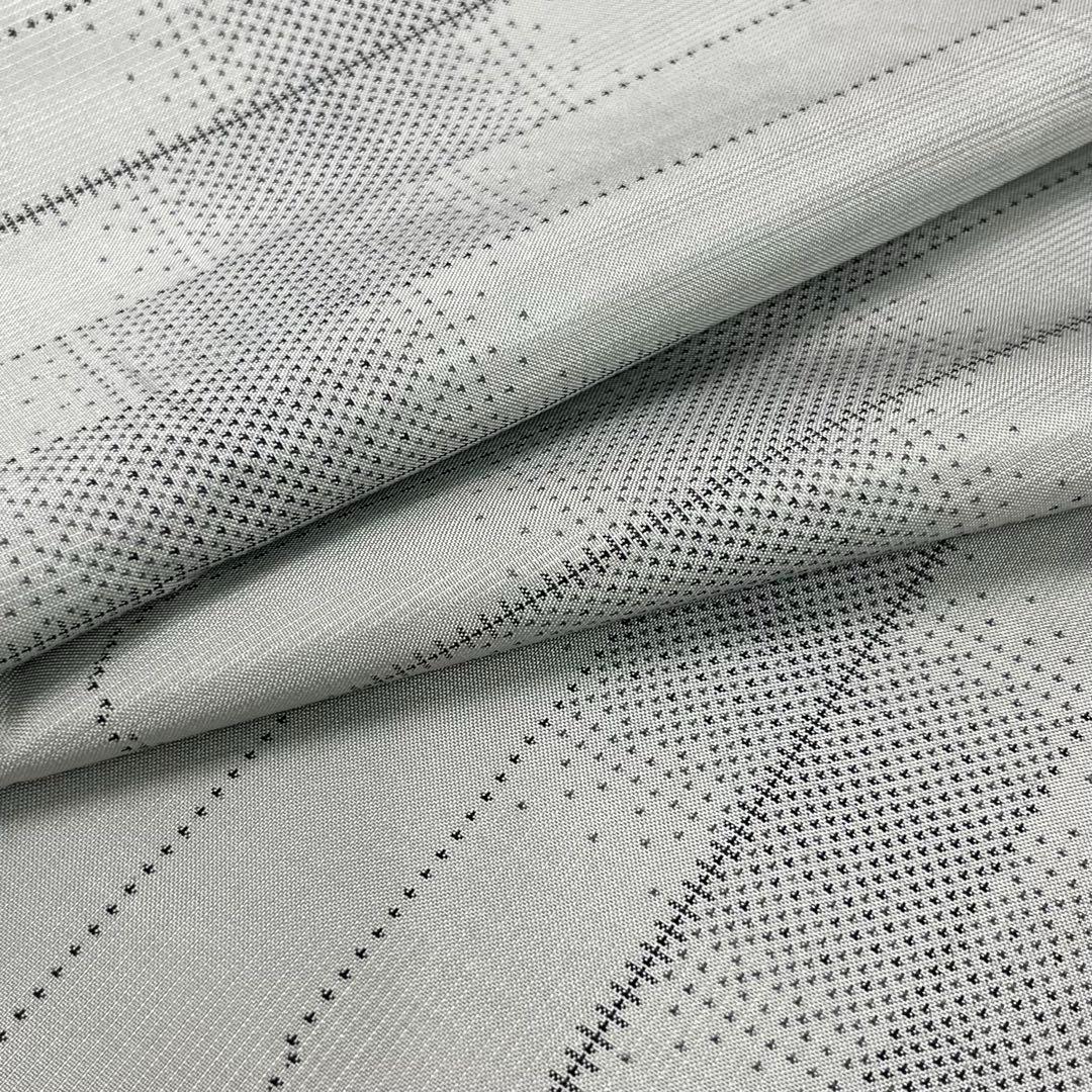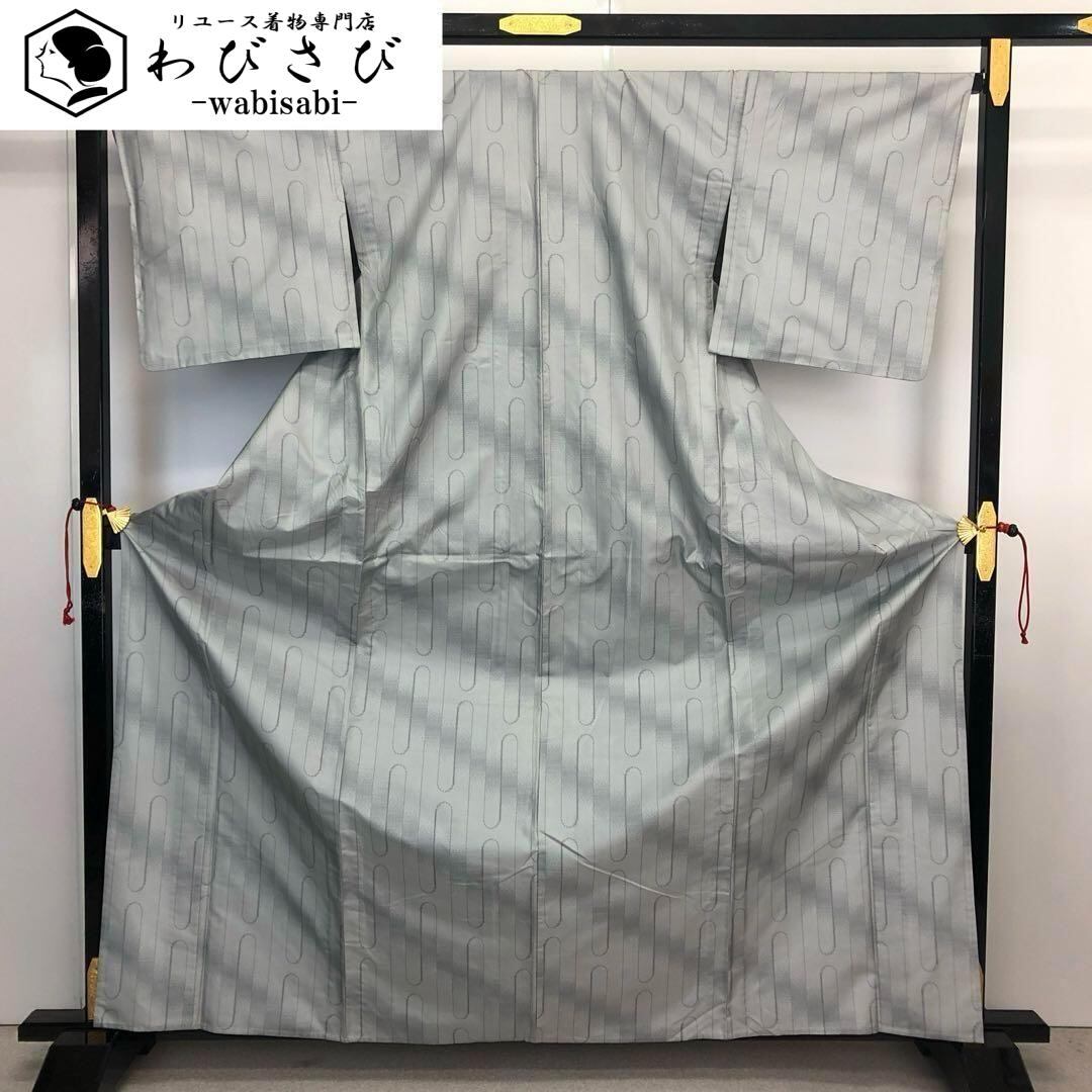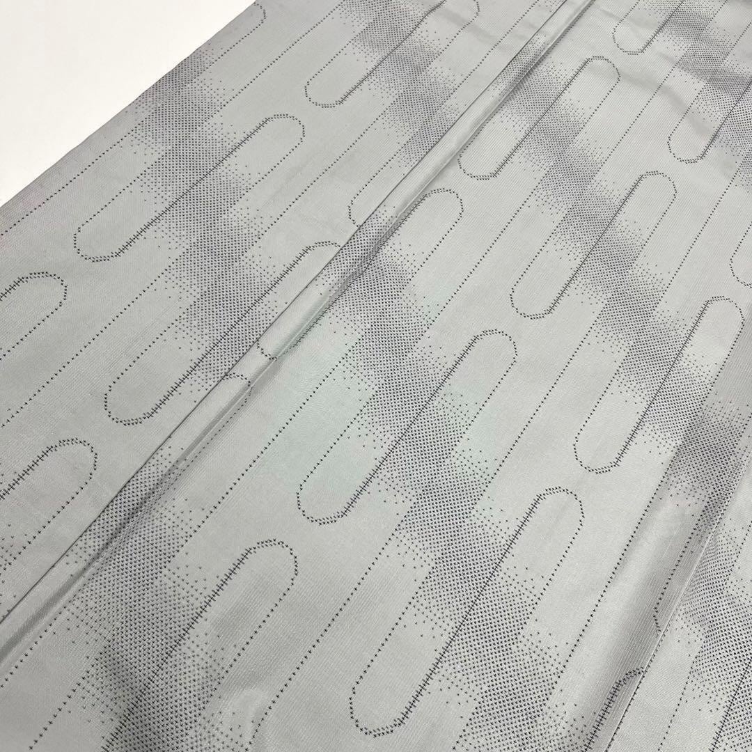 灰色ベースのお色味に縦柄の霞模様がデザインされた素敵な柄裄のお品でございます。