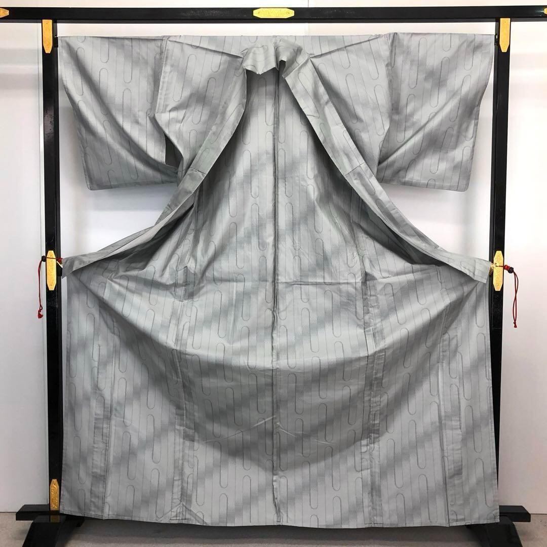 単衣 本場大島紬 カタス7マルキ 縦柄霞模様 灰色 トールサイズ K-3948 着物 きもの kimono 和服 和装 中古 リサイクル着物 【送料無料】
