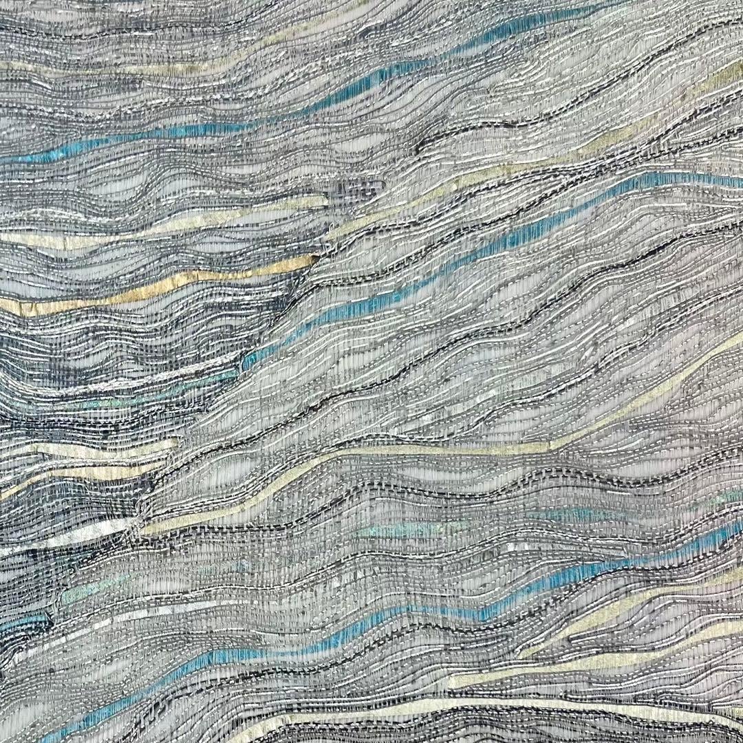 透け感のある夏すくい織の薄灰色によれ織模様の柄裄がデザインされた涼しげな雰囲気のお品でございます。