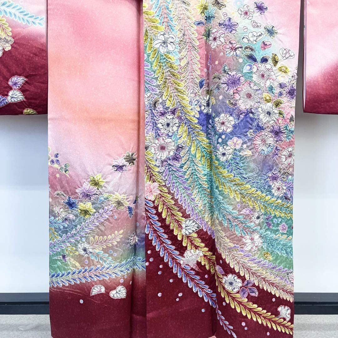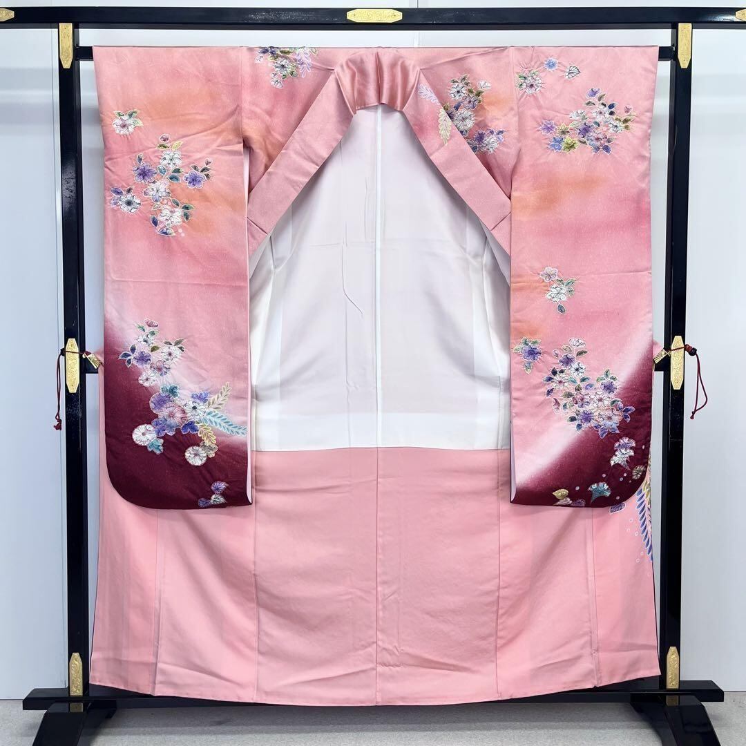 振袖 美しい辻が花絞り 暈し 桃紅色 K-3952 着物 きもの kimono 和服 和装 中古 リサイクル着物 【送料無料】