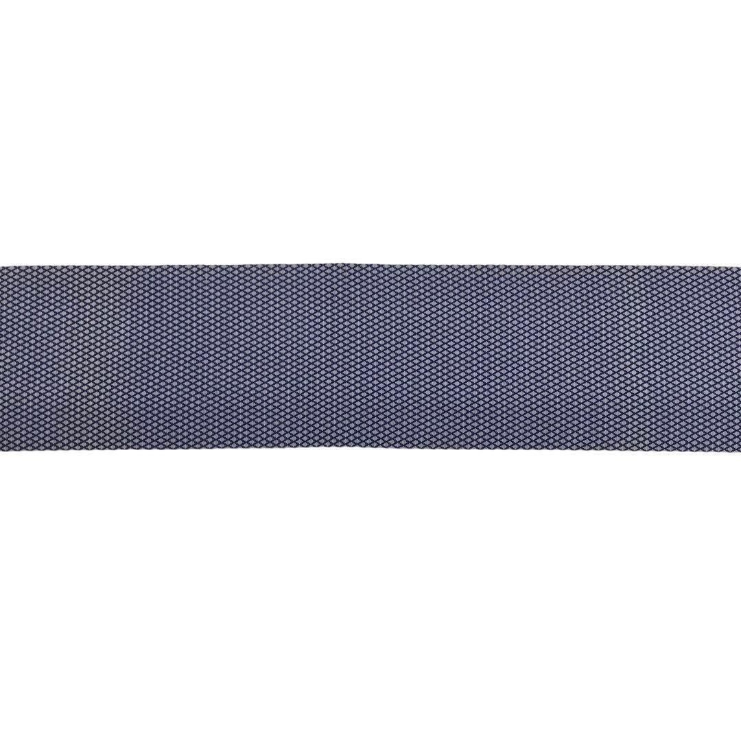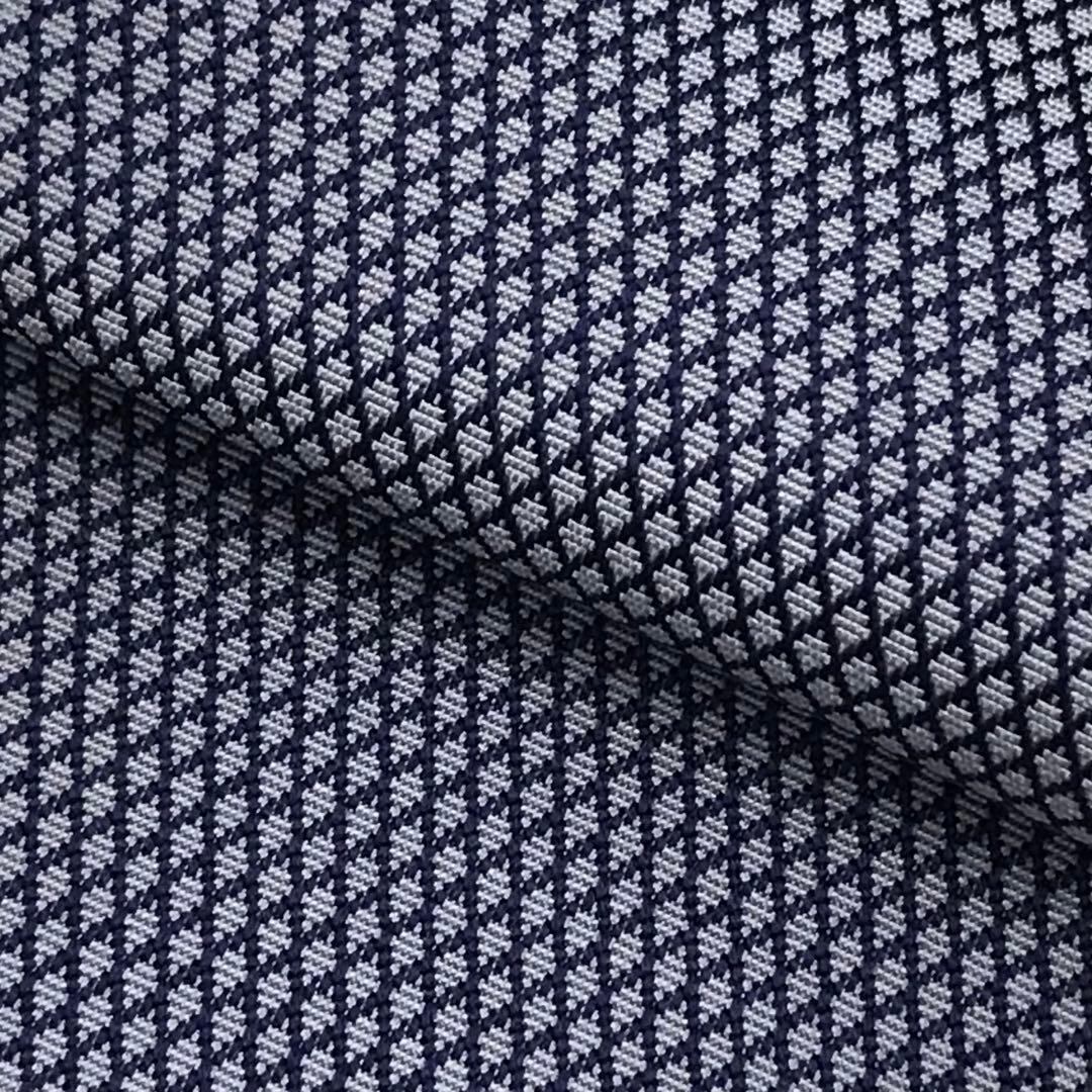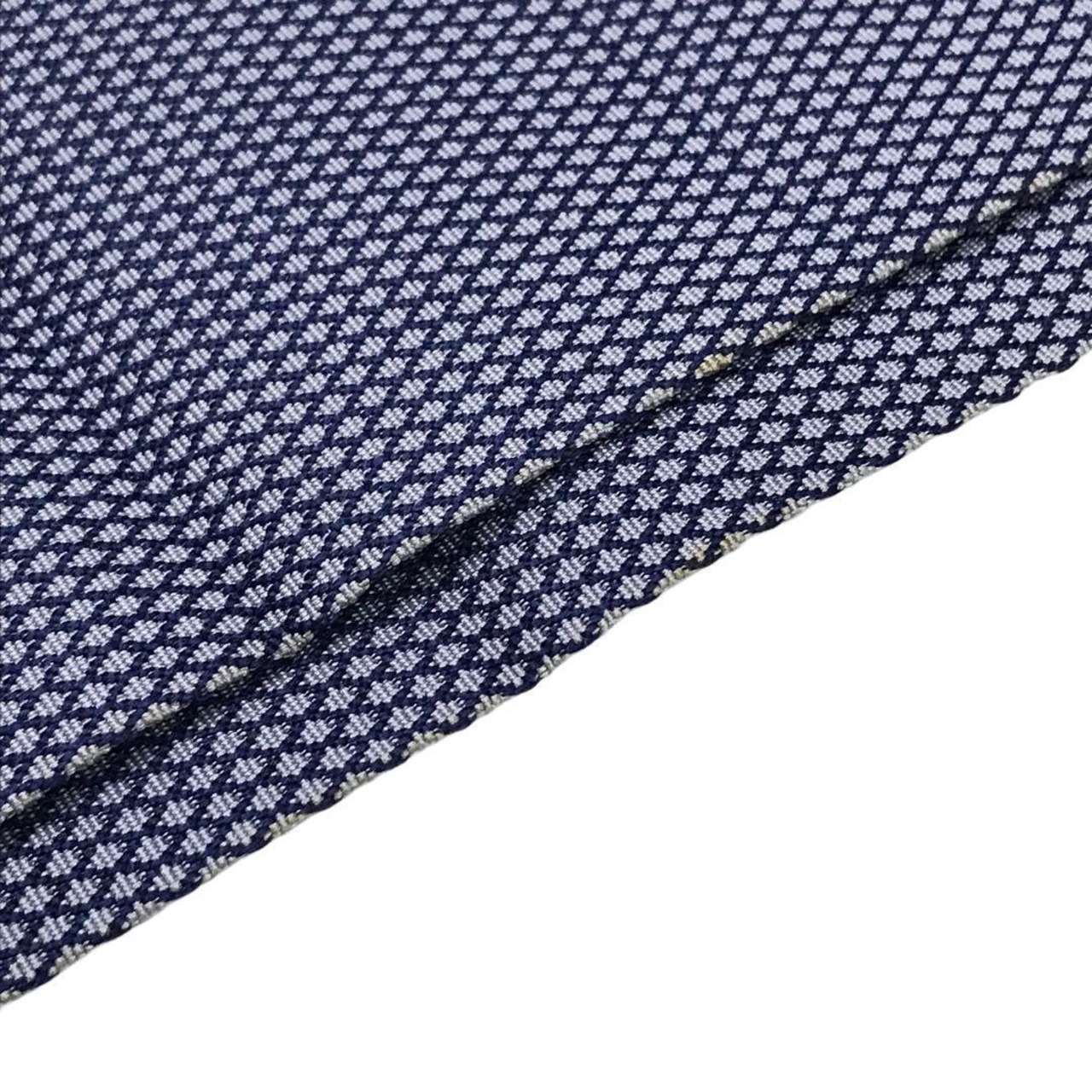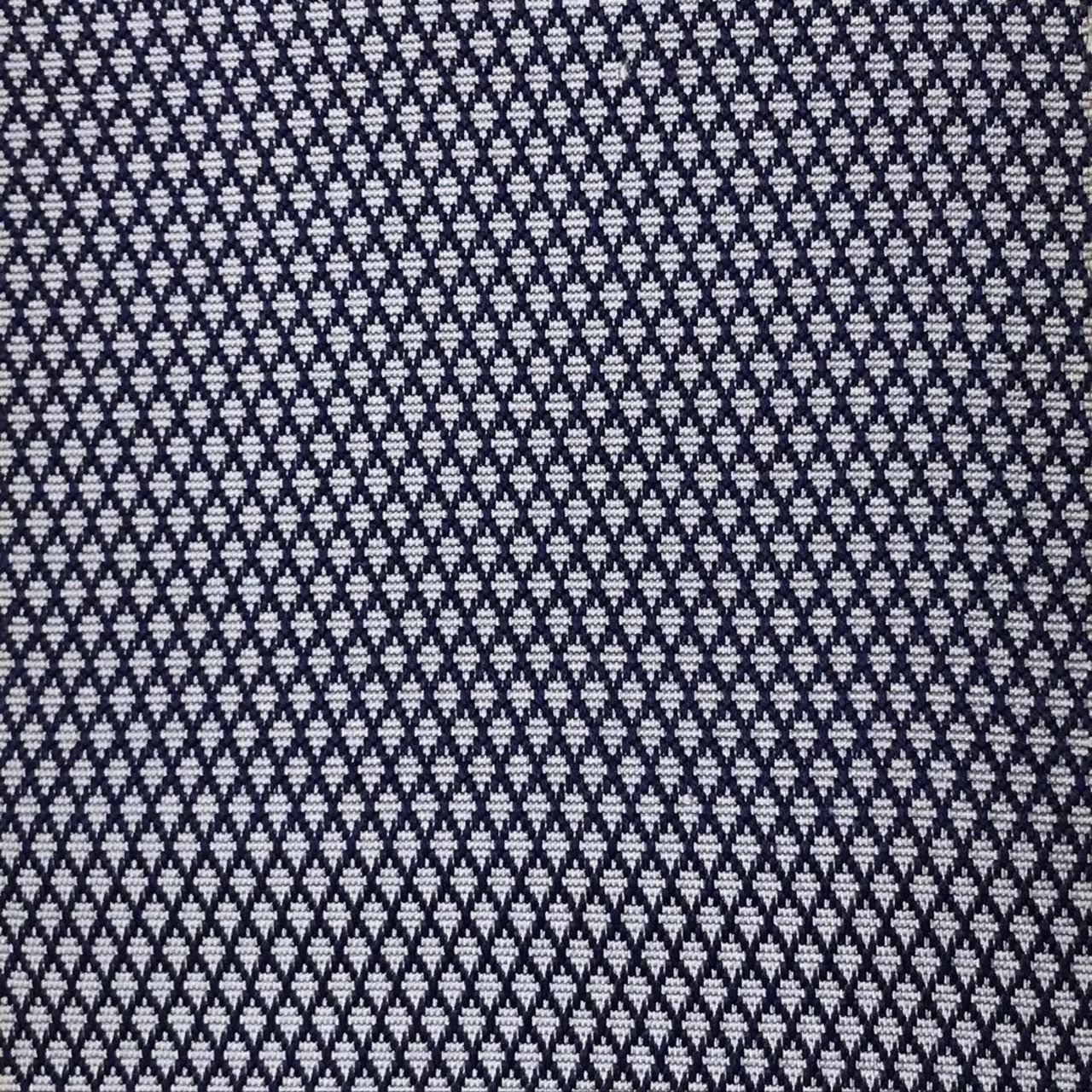 紺藍色のお色味に細かな菱繋ぎの織模様がデザインされた素敵なお品でございます。