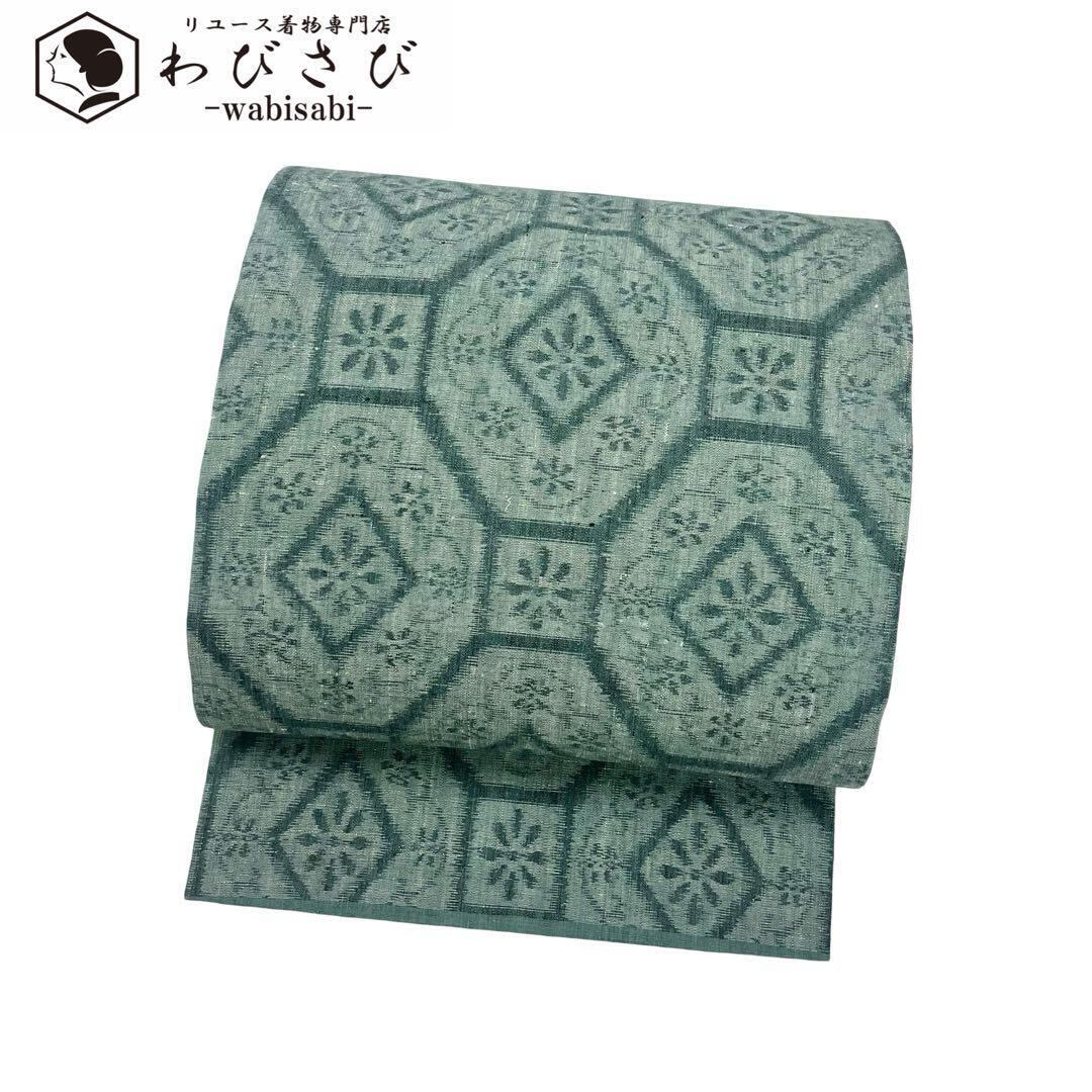 名古屋帯 花蜀江模様 紬 錆青磁色 O-3996