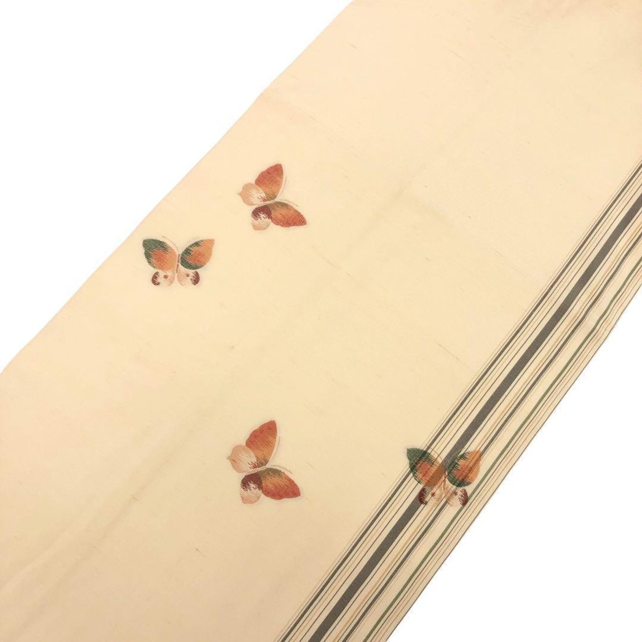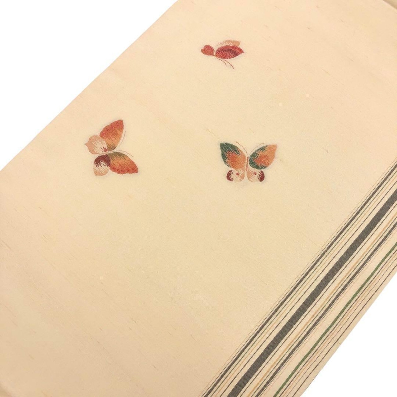名古屋帯 縦縞模様に蝶々柄 紬 麹色 O-3397