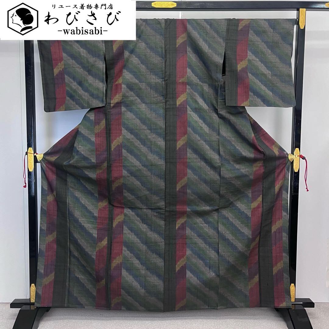 単衣 紬 落ち着きのある色彩 斜め模様 トールサイズ K-3972 着物 きもの kimono 和服 和装 中古 リサイクル着物 【送料無料】