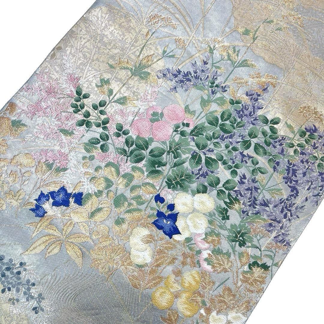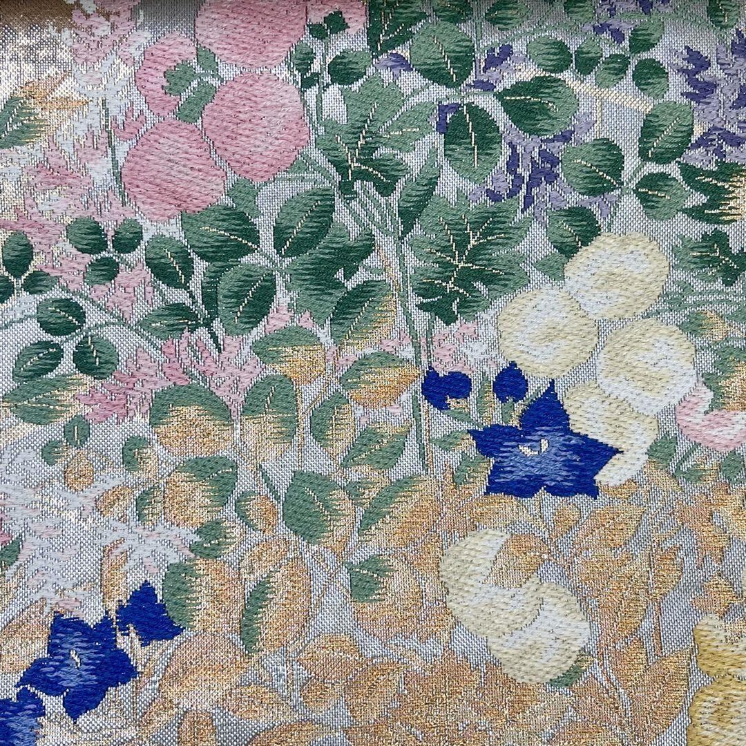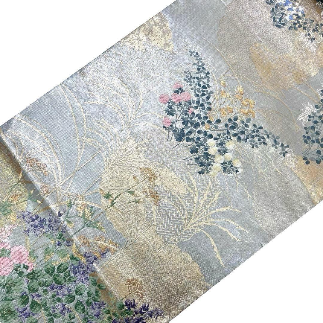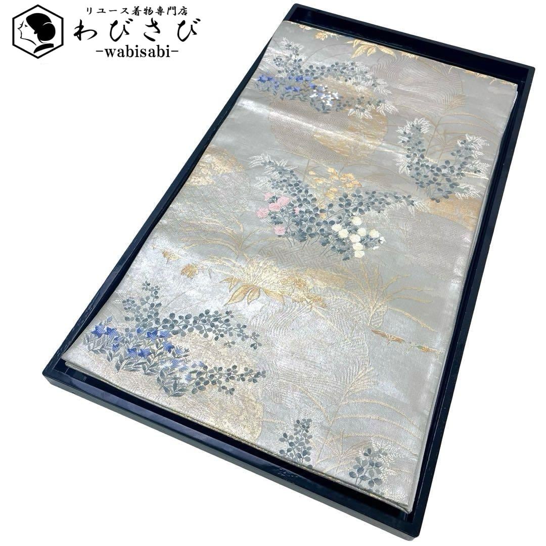 袋帯 琳派秋草図の世界 秋の花草模様 亀甲 七宝 芒 金銀糸 O-4020 着物 きもの kimono 和服 和装 中古 リサイクル着物 【送料無料】