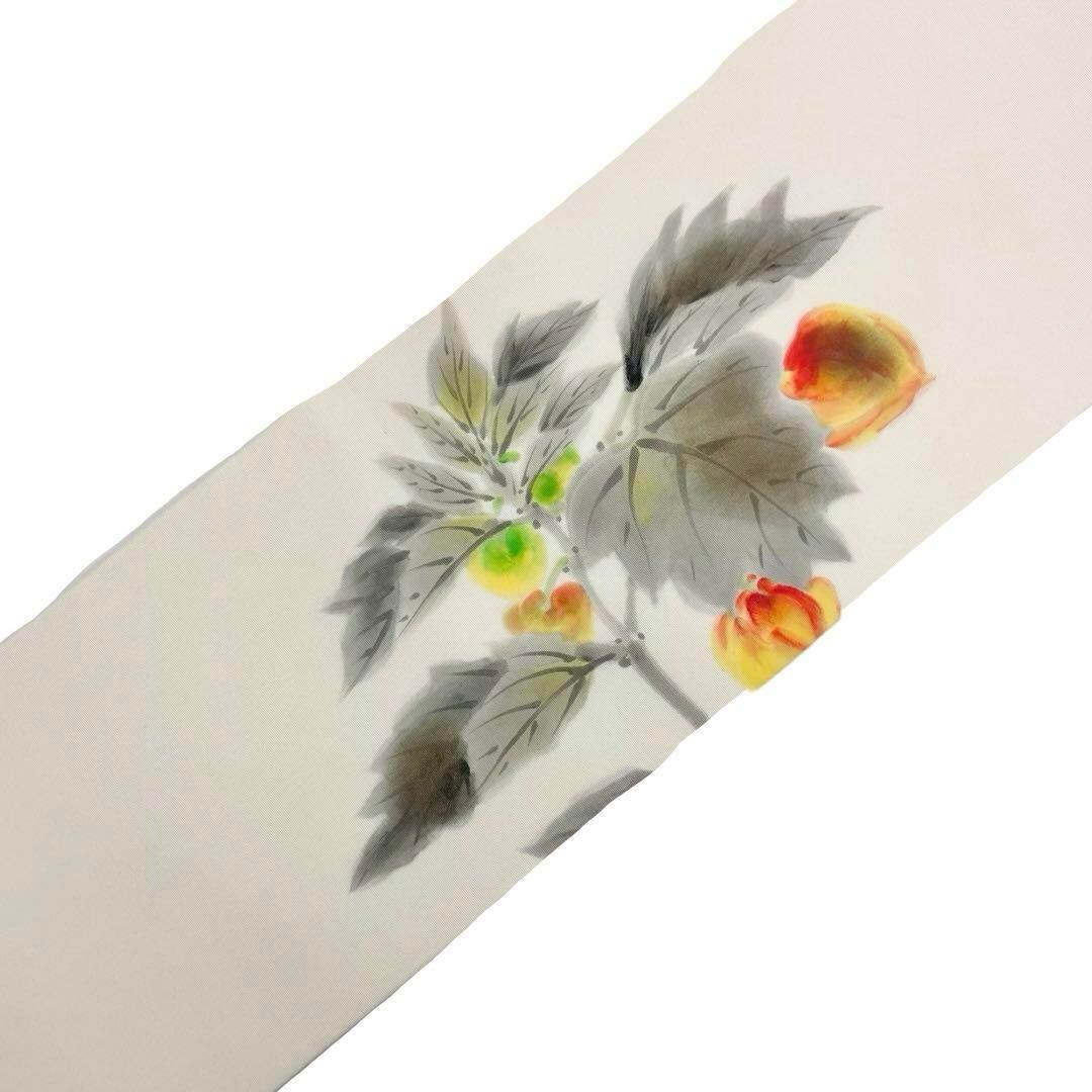 名古屋帯 熊谷好博子 塩瀬 手描き 鬼灯 乳白色 O-4042