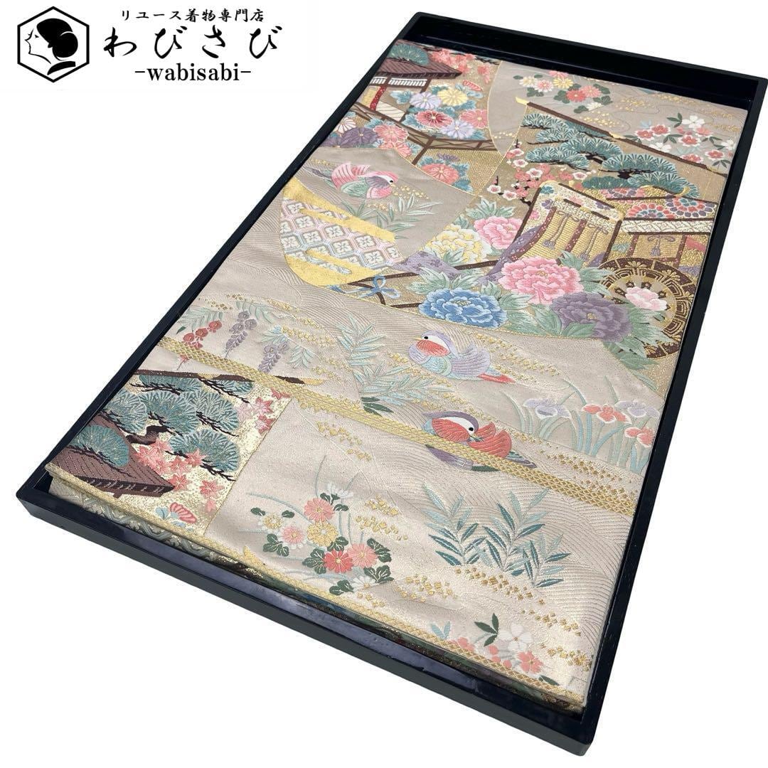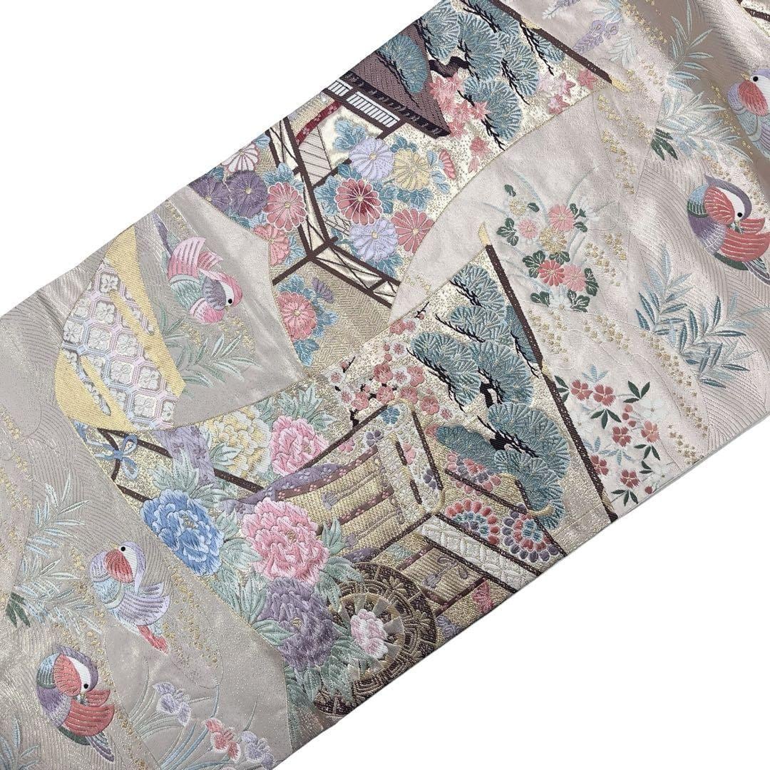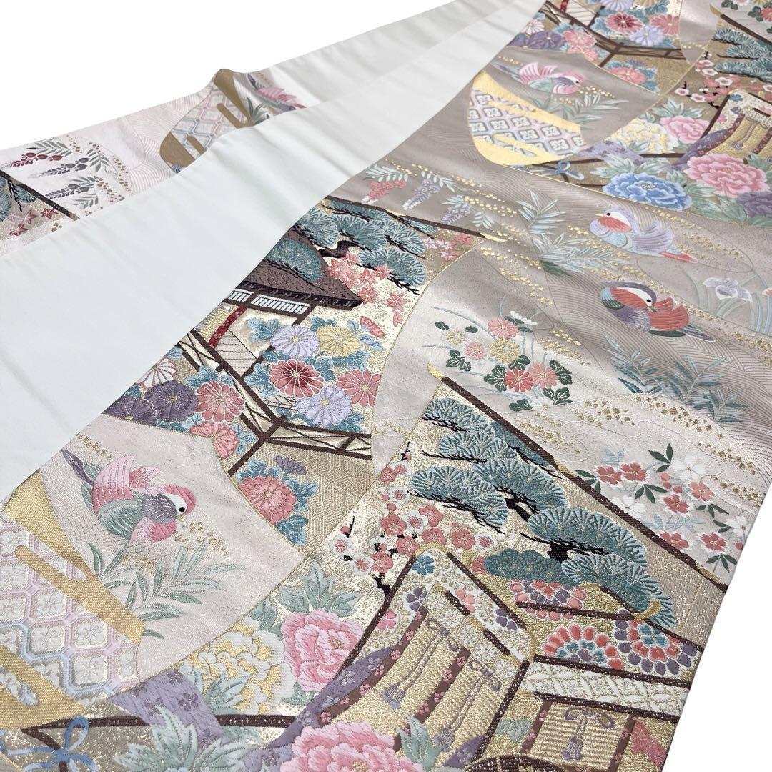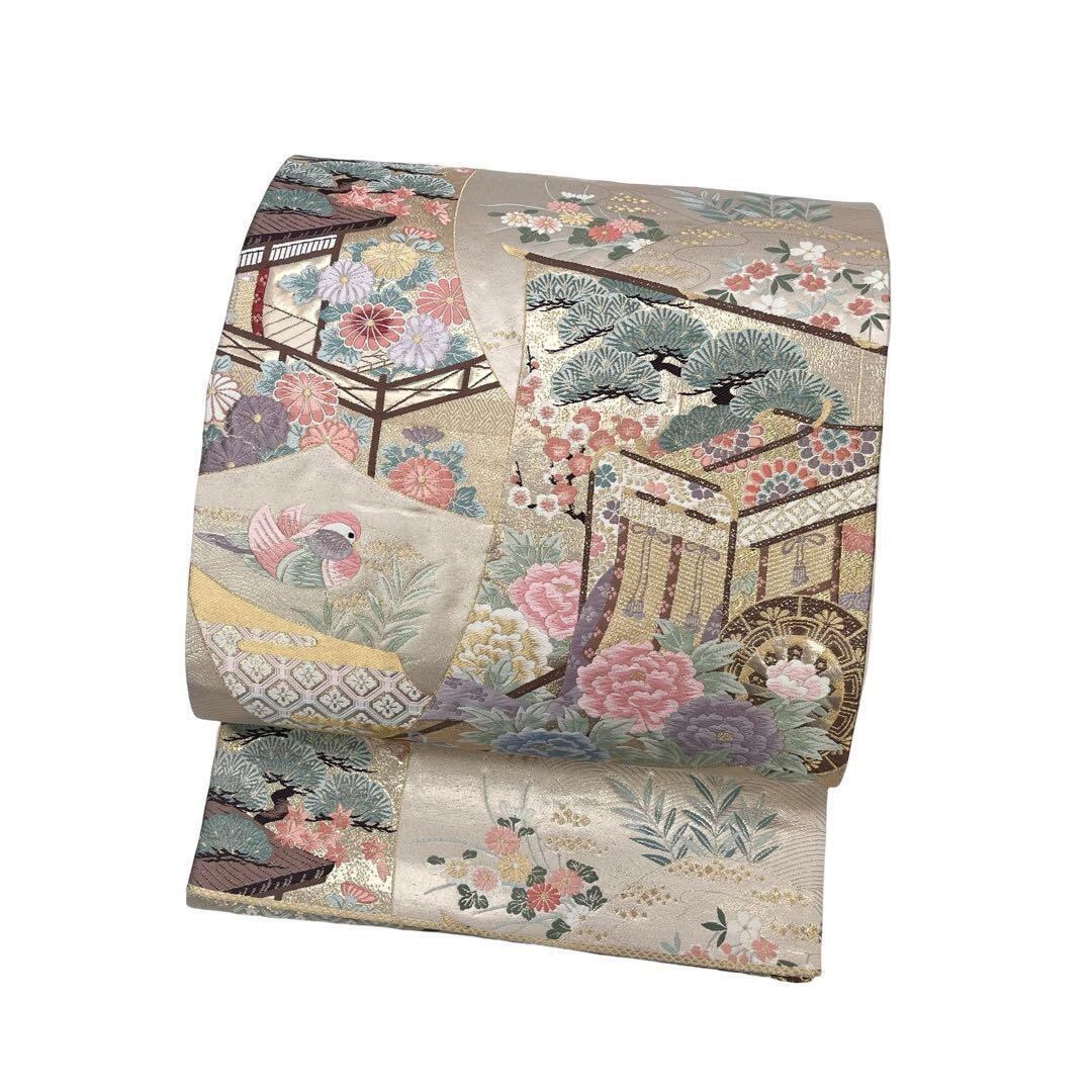 九百錦、花鳥華飛鶴、本金二重箔、美しい花柄に鶴などの柄裄がデザインされた素敵な柄裄のお品でございます。