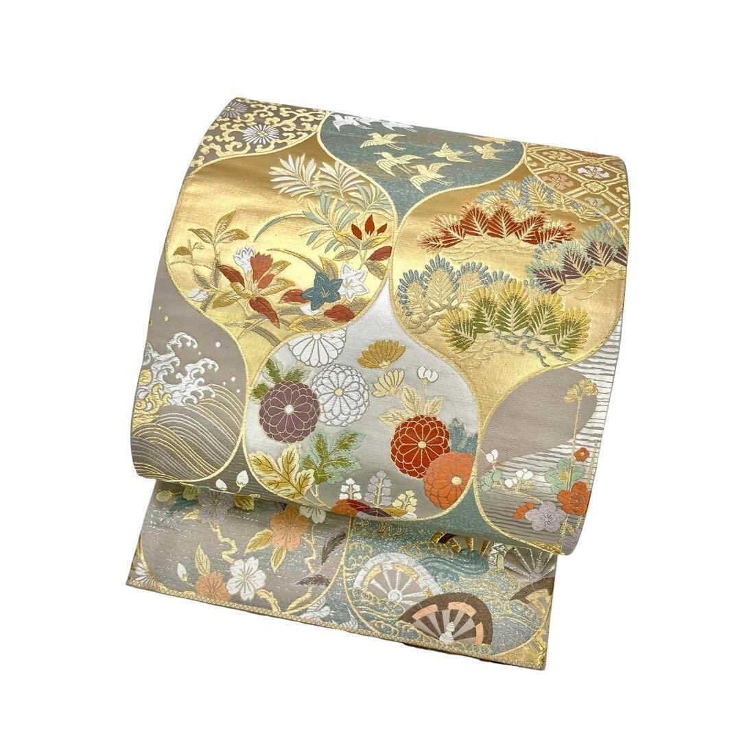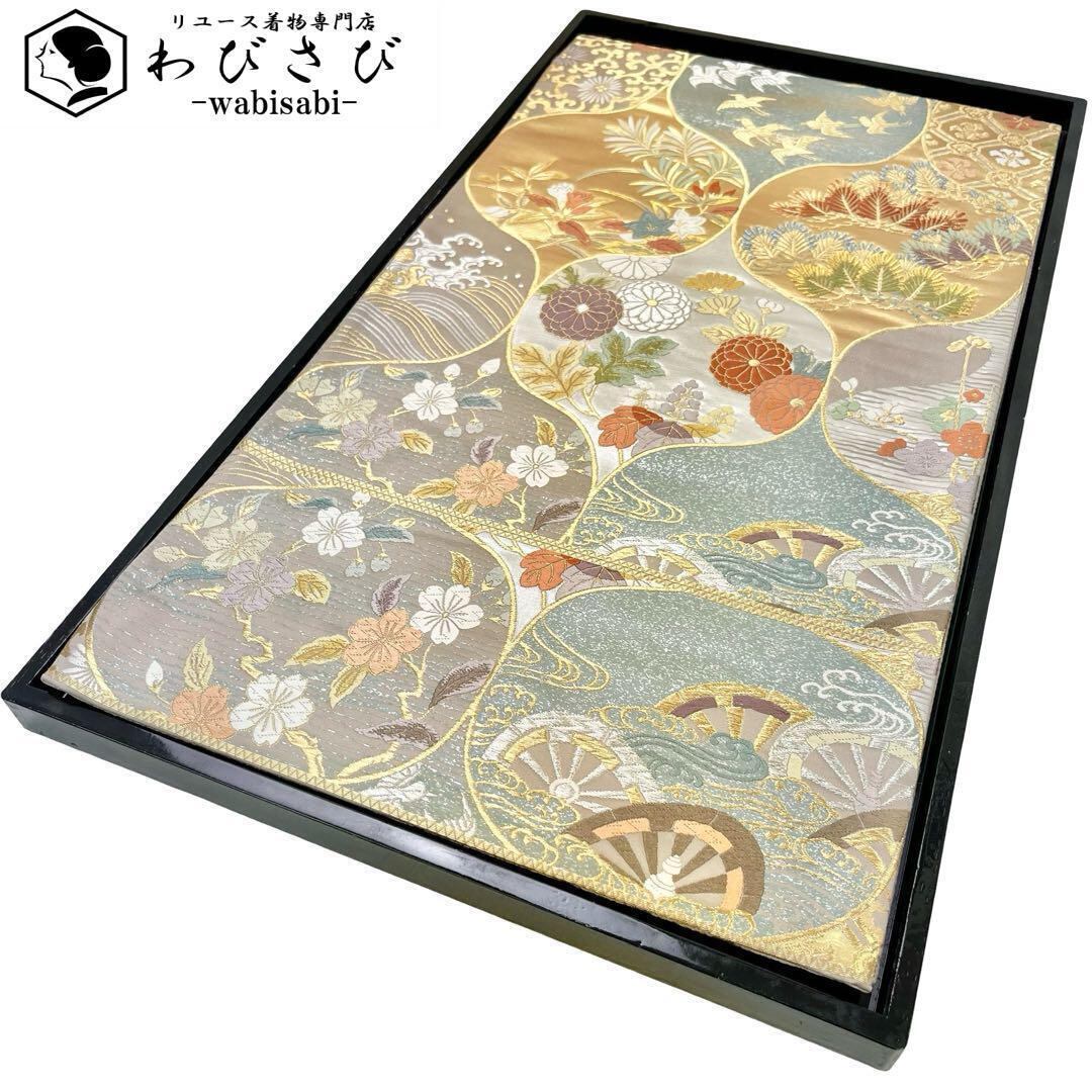 遠州鼠色ベースのお色味に金銀糸が使われた花草模様に鳥などがデザインされた素敵な柄裄のお品でございます。