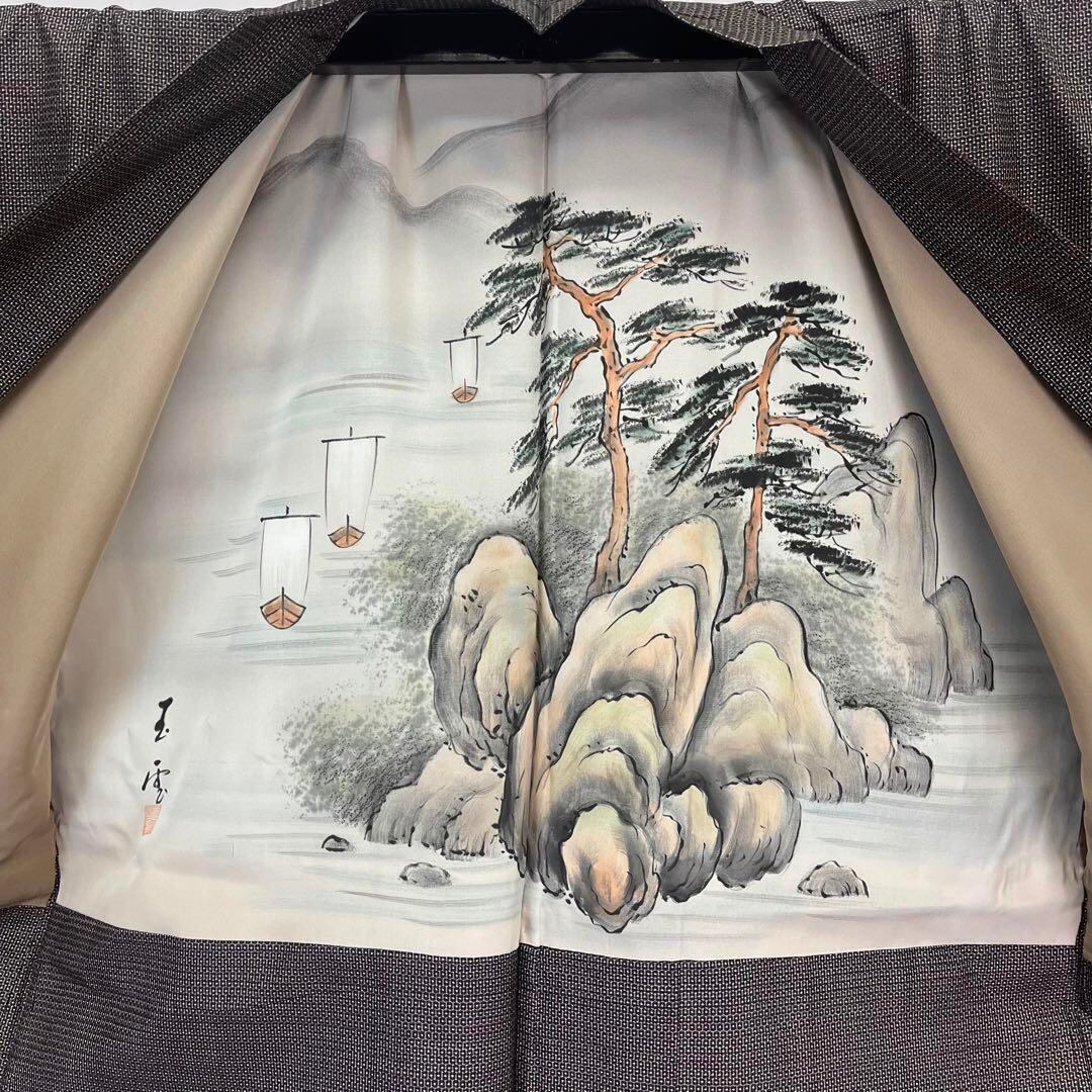 100亀甲の茶泥染の雰囲気の良いお色の素敵なお品でございます。