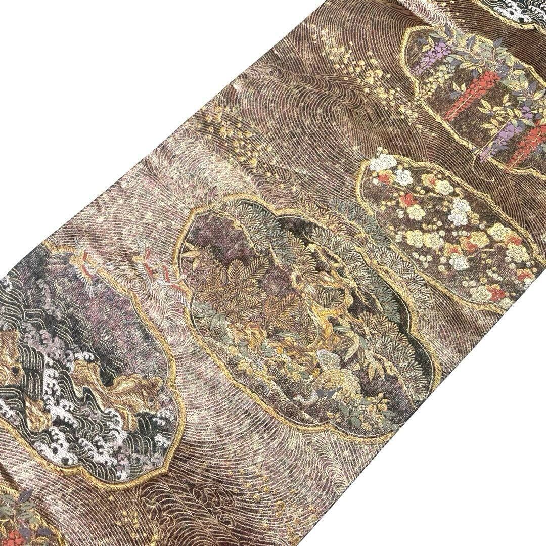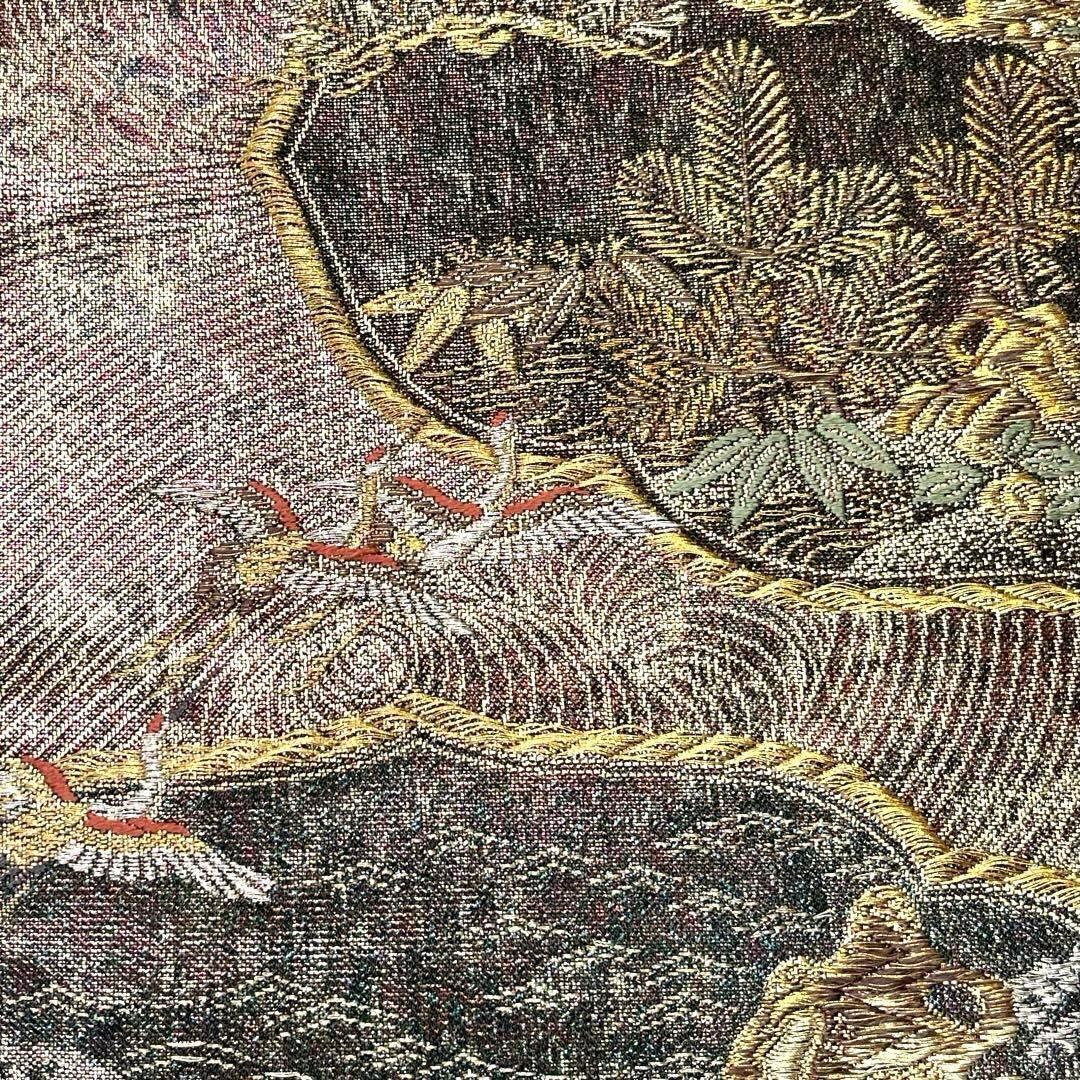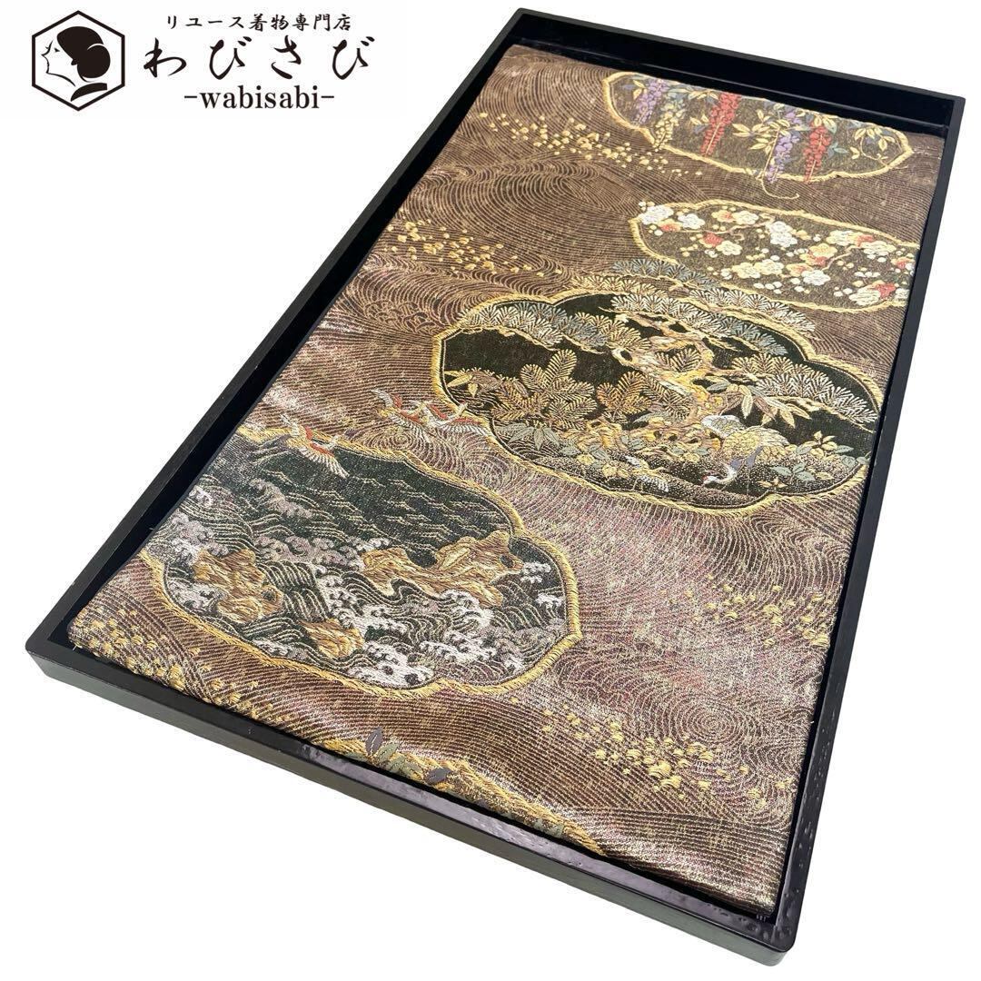 袋帯 波模様に松 鶴 梅 藤 金銀糸 O-4052
