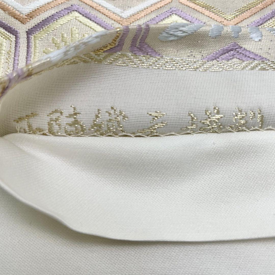 袋帯 西陣織 毘沙門亀甲 花亀甲 乳白色 金糸 O-4080