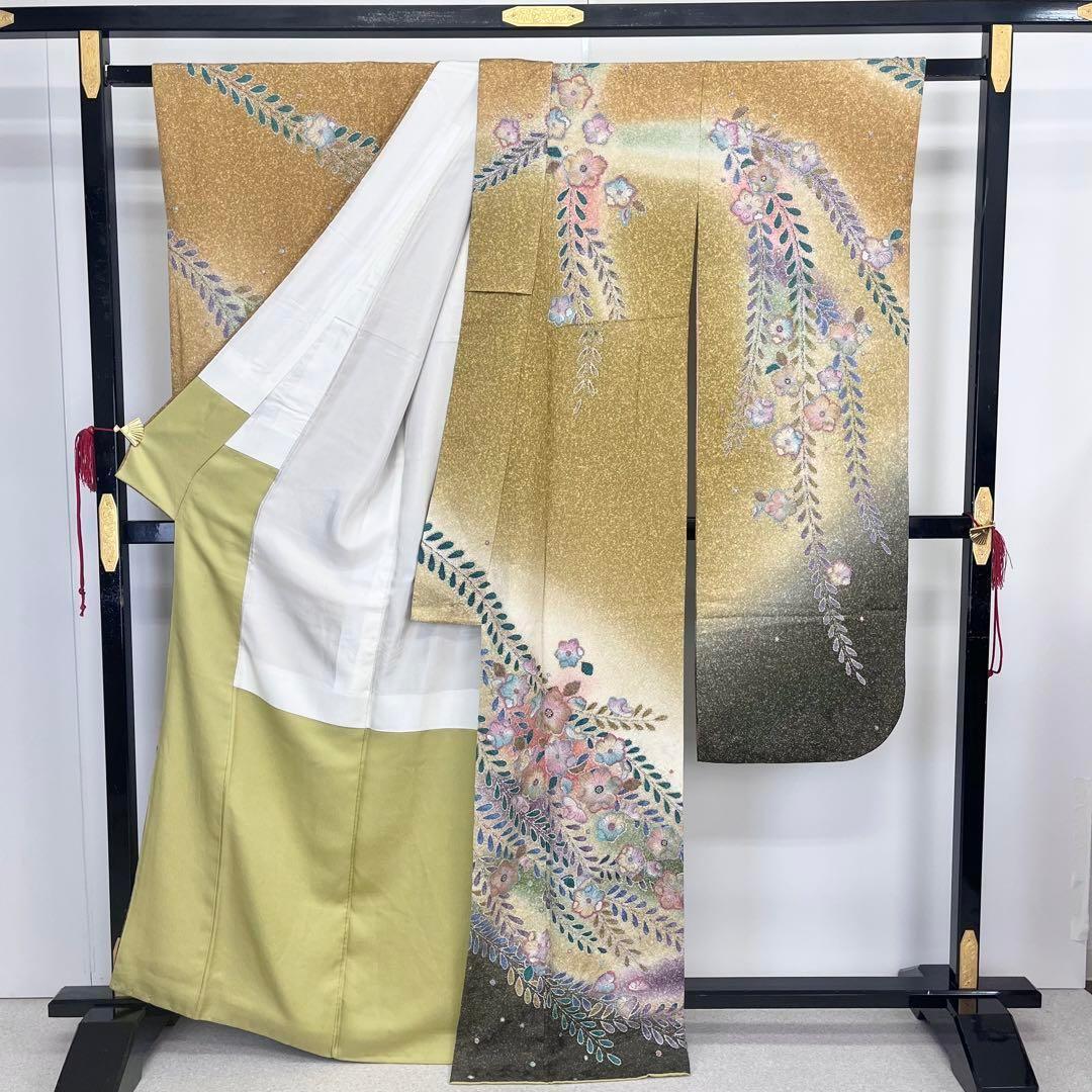 黄櫨色ベースのお色味に暈しのグラデーション、美しい辻が花絞りがデザインされた素敵な柄裄のお品でございます。