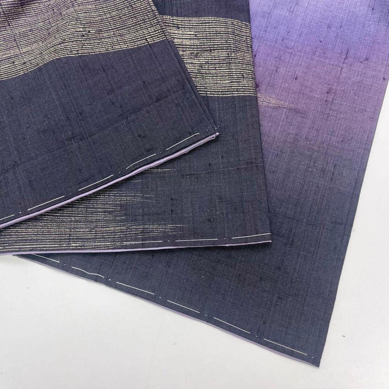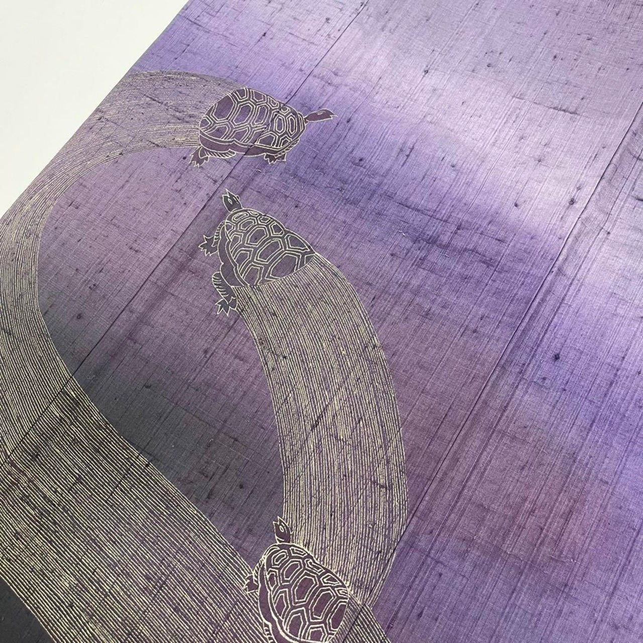 付下げ 紬 作家物 蓑亀 金彩 暈し染 紫色 しつけ糸 K-4011