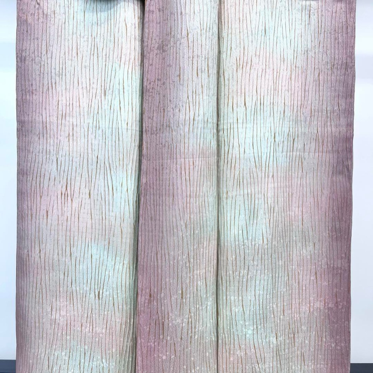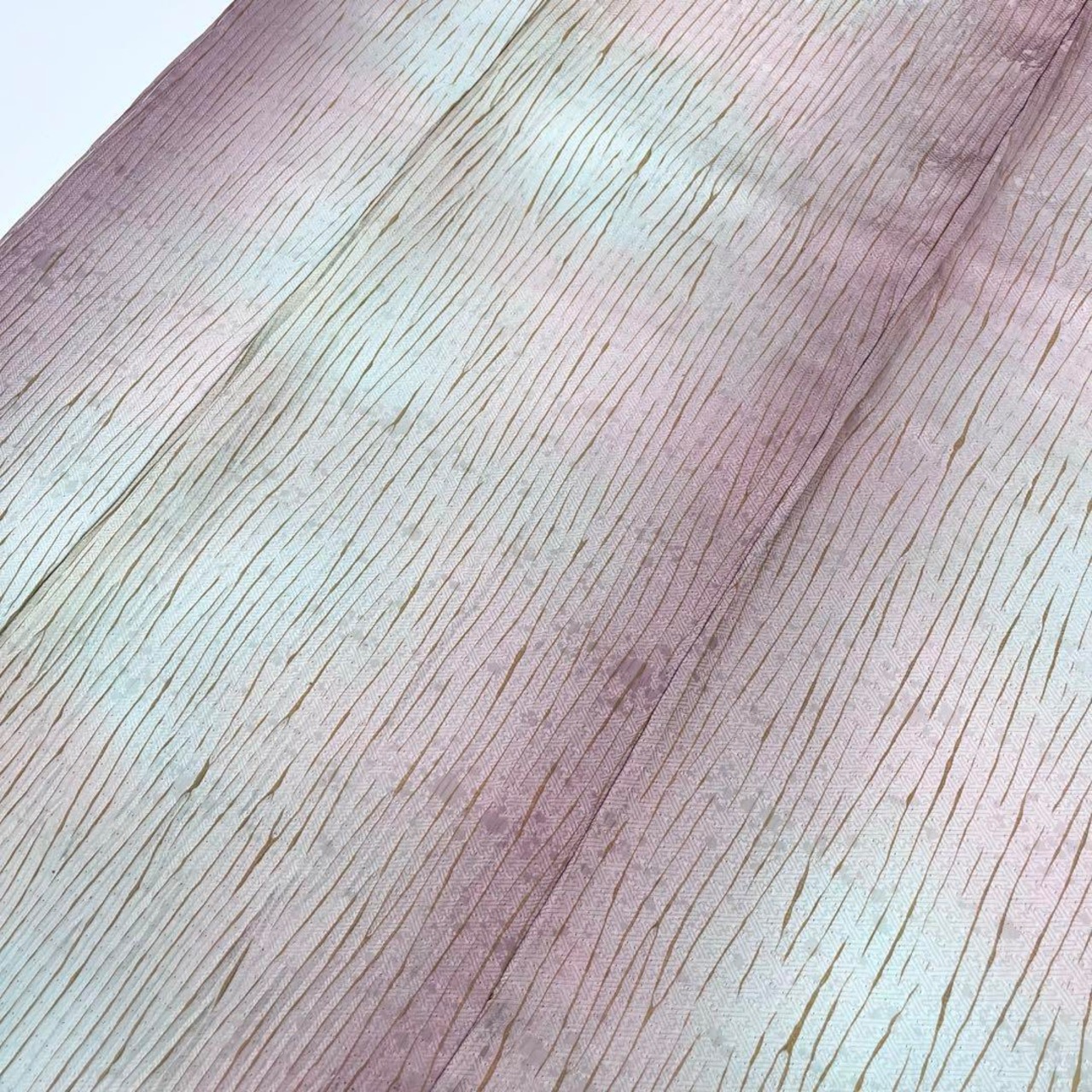 縦柄ベースの暈しの優しいお色味のグラデーション、杢目絞りの柄裄が美しい素敵なお品でございます。