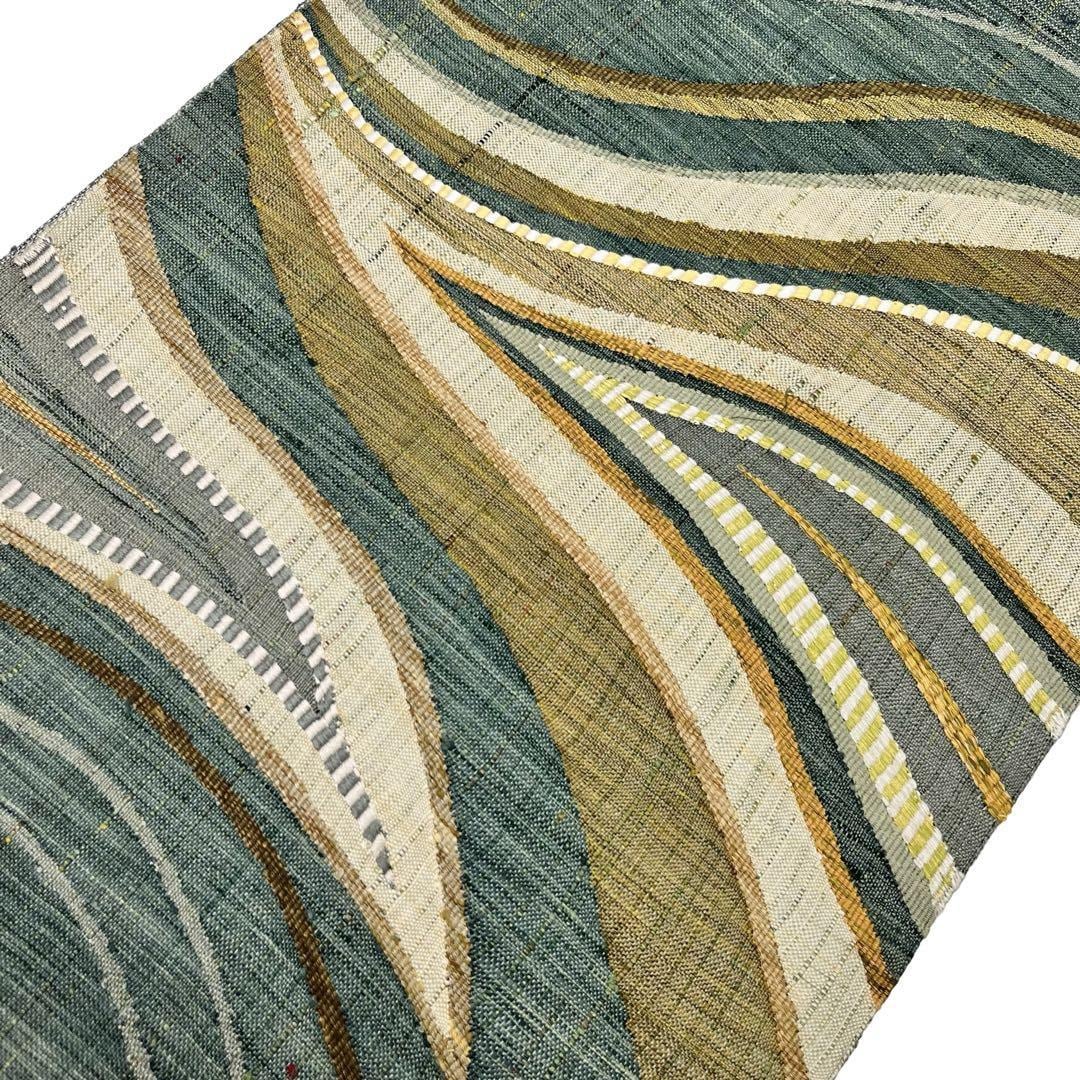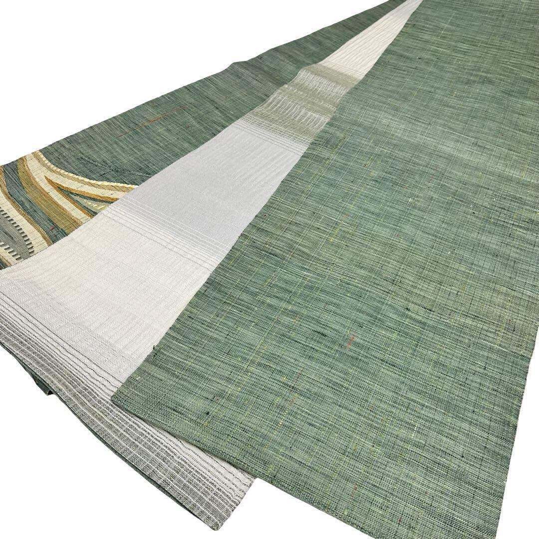 袋帯 西陣 じゅらく 紬 曲線模様 灰緑色 O-4101 着物 きもの kimono 和服 和装 中古 リサイクル着物 【送料無料】