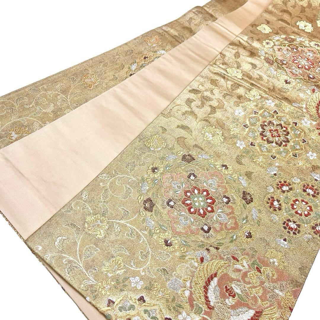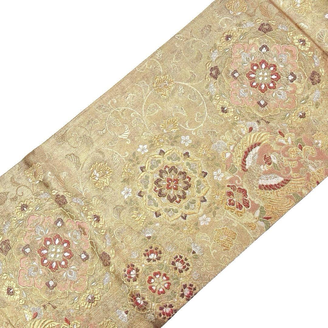 袋帯 鳳凰に花唐草模様 金銀糸 金色 ガード加工 O-4129 着物 きもの kimono 和服 和装 中古 リサイクル着物 【送料無料】