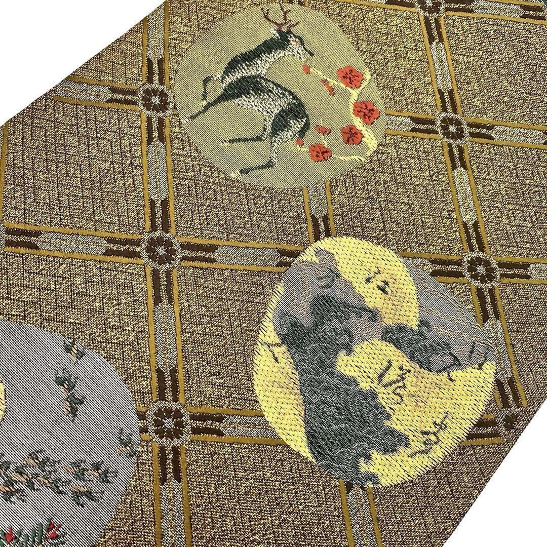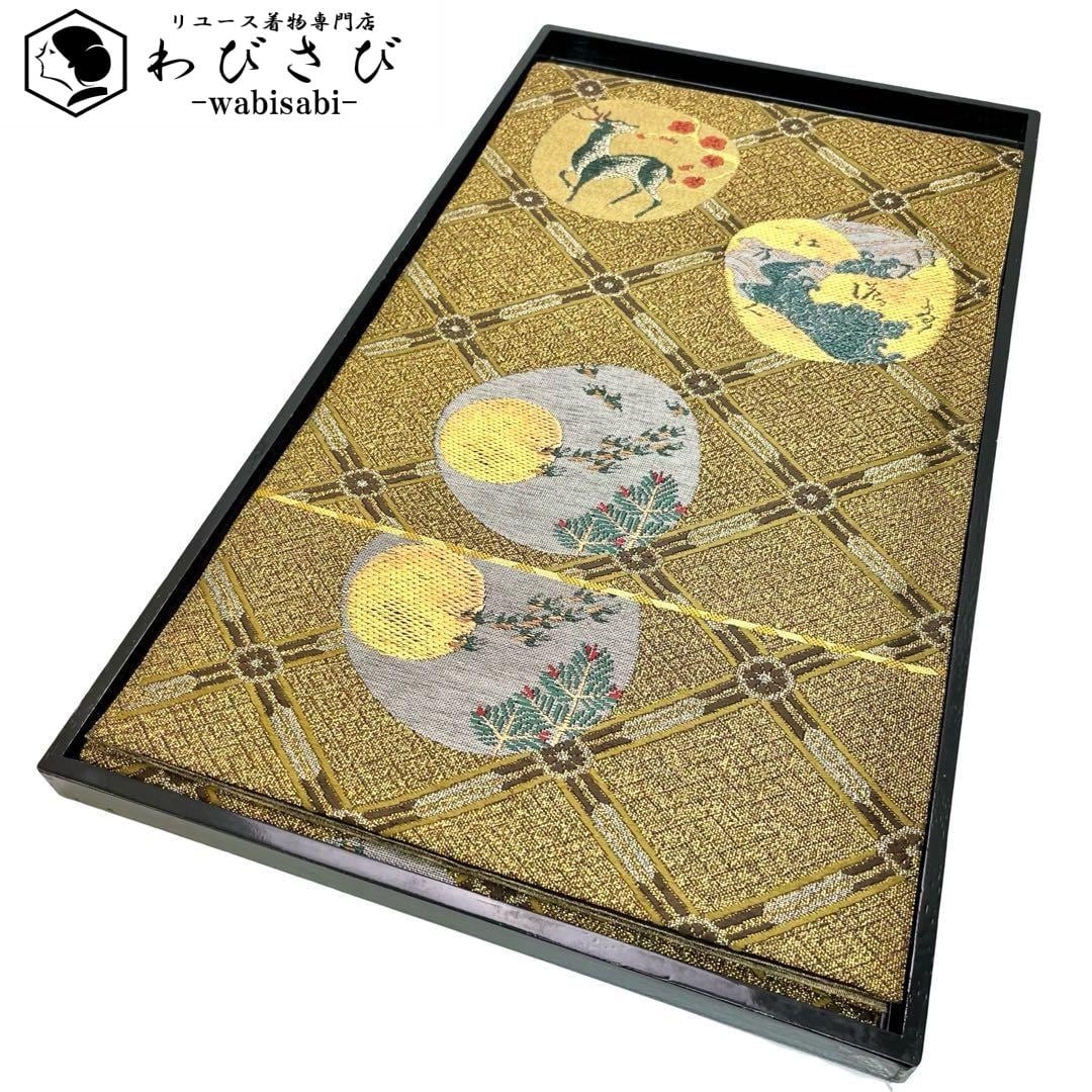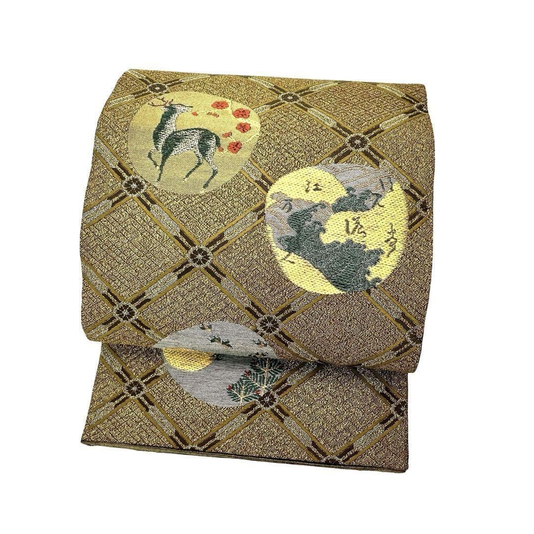 袋帯 丸に月と松 鹿と梅 菱形模様 金色 O-4109 着物 きもの kimono 和服 和装 中古 リサイクル着物 【送料無料】