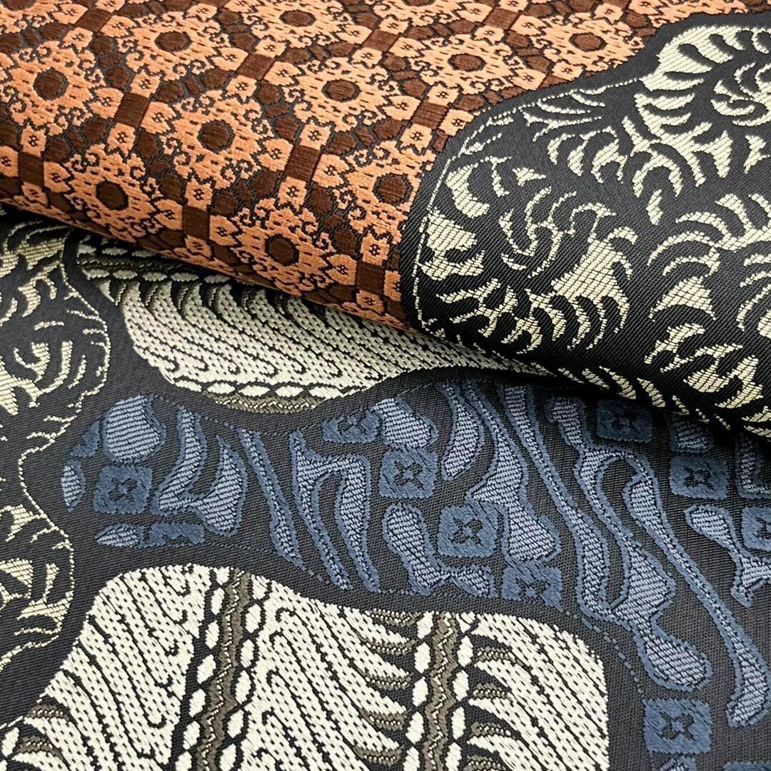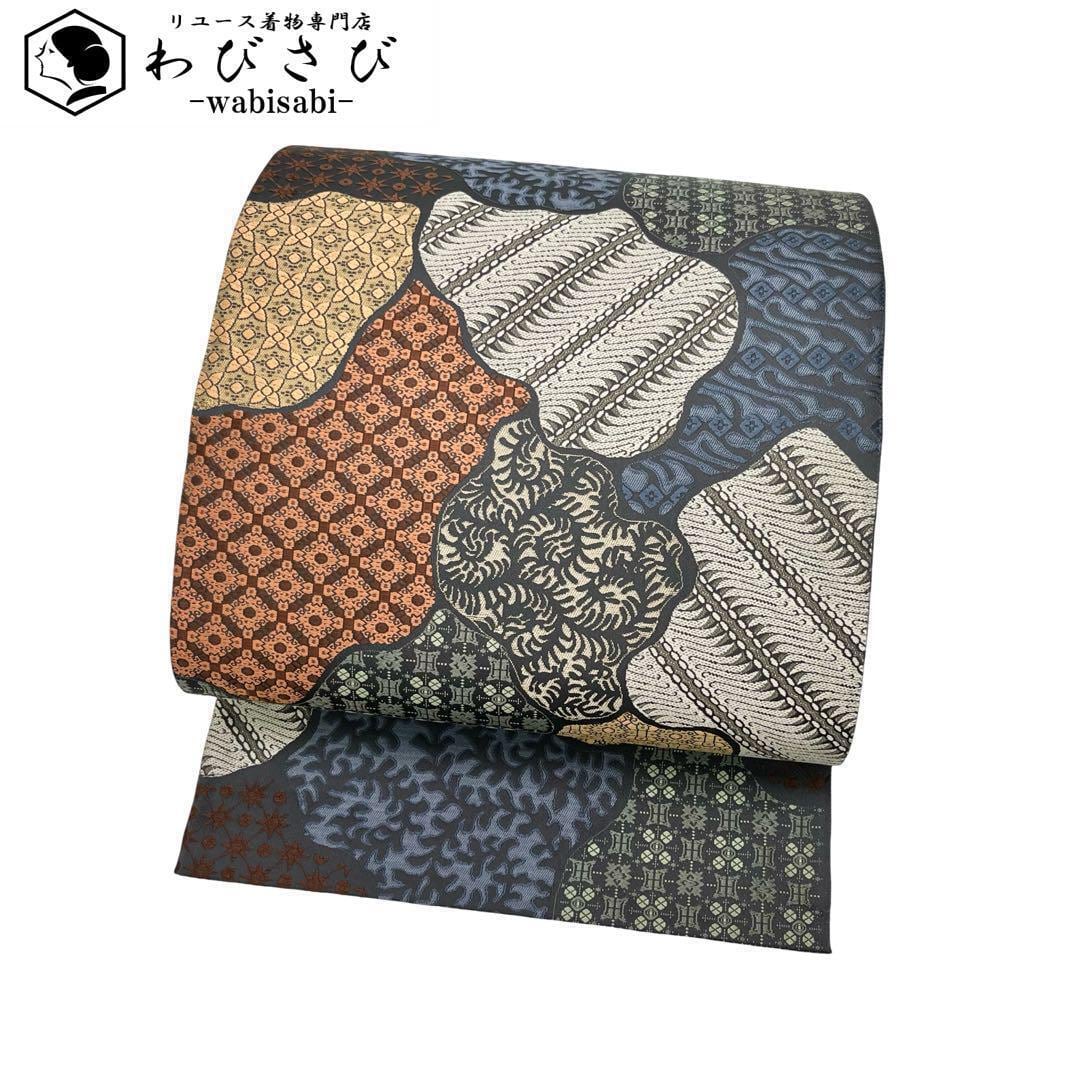 燻銀色ベースの多様な柄裄、色彩の織模様がデザインされた素敵な柄裄のお品でございます。