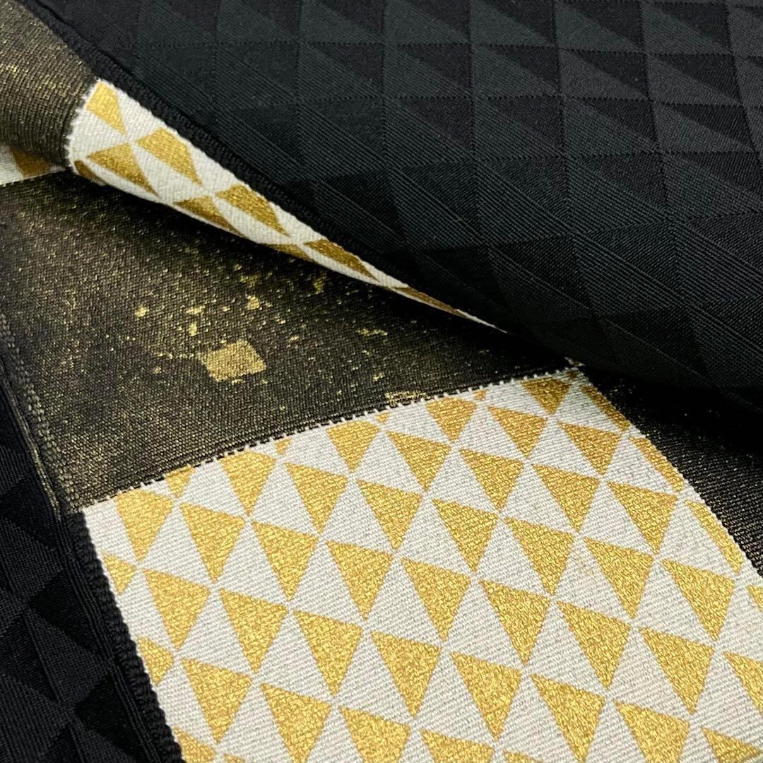 袋帯 格子に鱗模様 箔散らし 金彩 黒色 O-4134 着物 きもの kimono 和服 和装 中古 リサイクル着物 【送料無料】