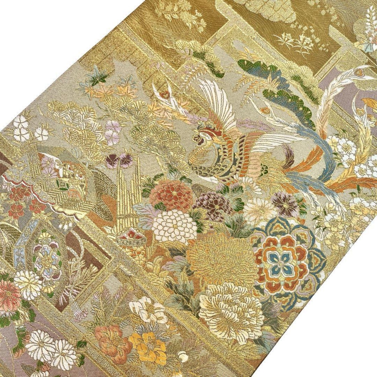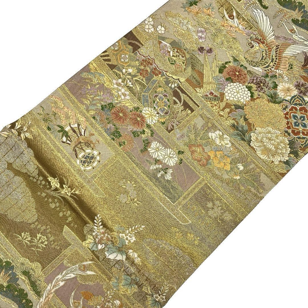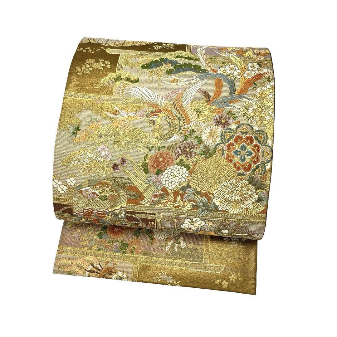 秀煌錦織と題された金色ベースの煌びやかなお色味に美しい鳳凰、貝桶に花模様がデザインされた素敵な柄裄のお品でございます。