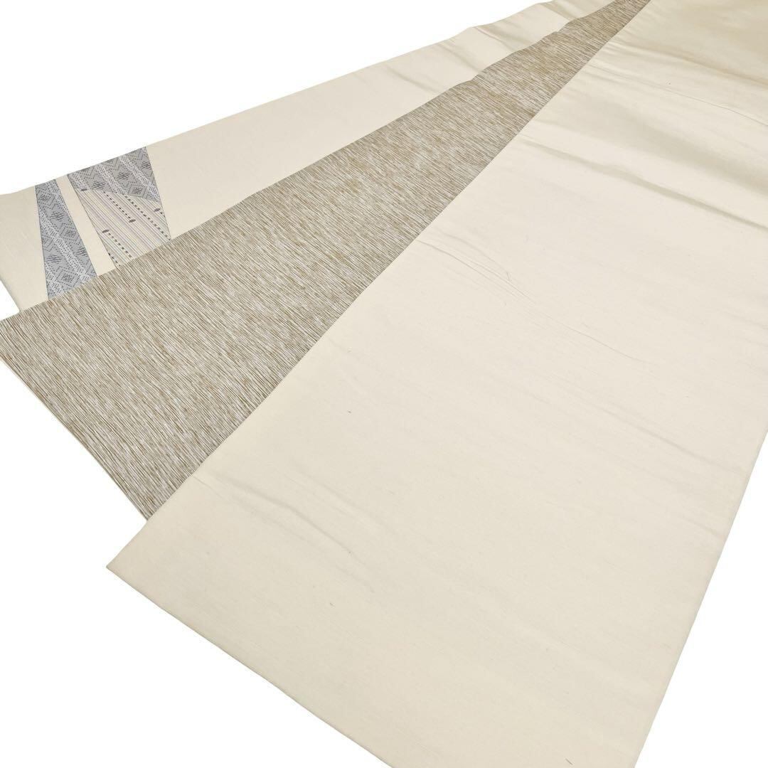 鳥の子色ベースの雰囲気の良い紬地に多様な柄裄がデザインされた切嵌の素敵なお品でございます。