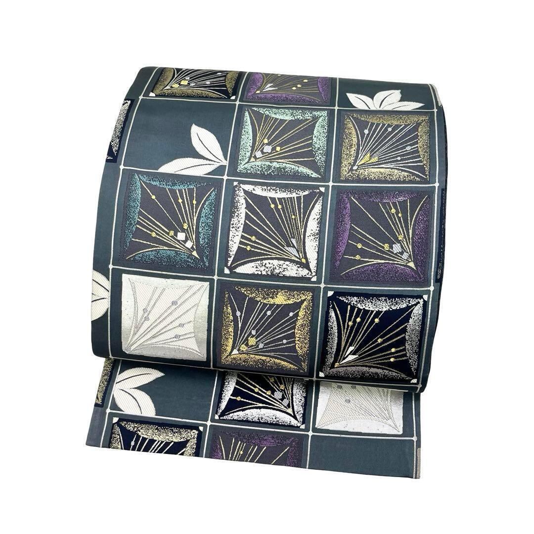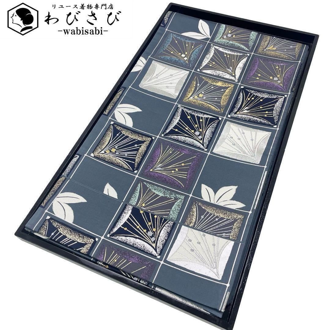 熨斗目色ベースのお色味、四角の中に品のある花模様がデザインされた素敵な柄裄のお品でございます。